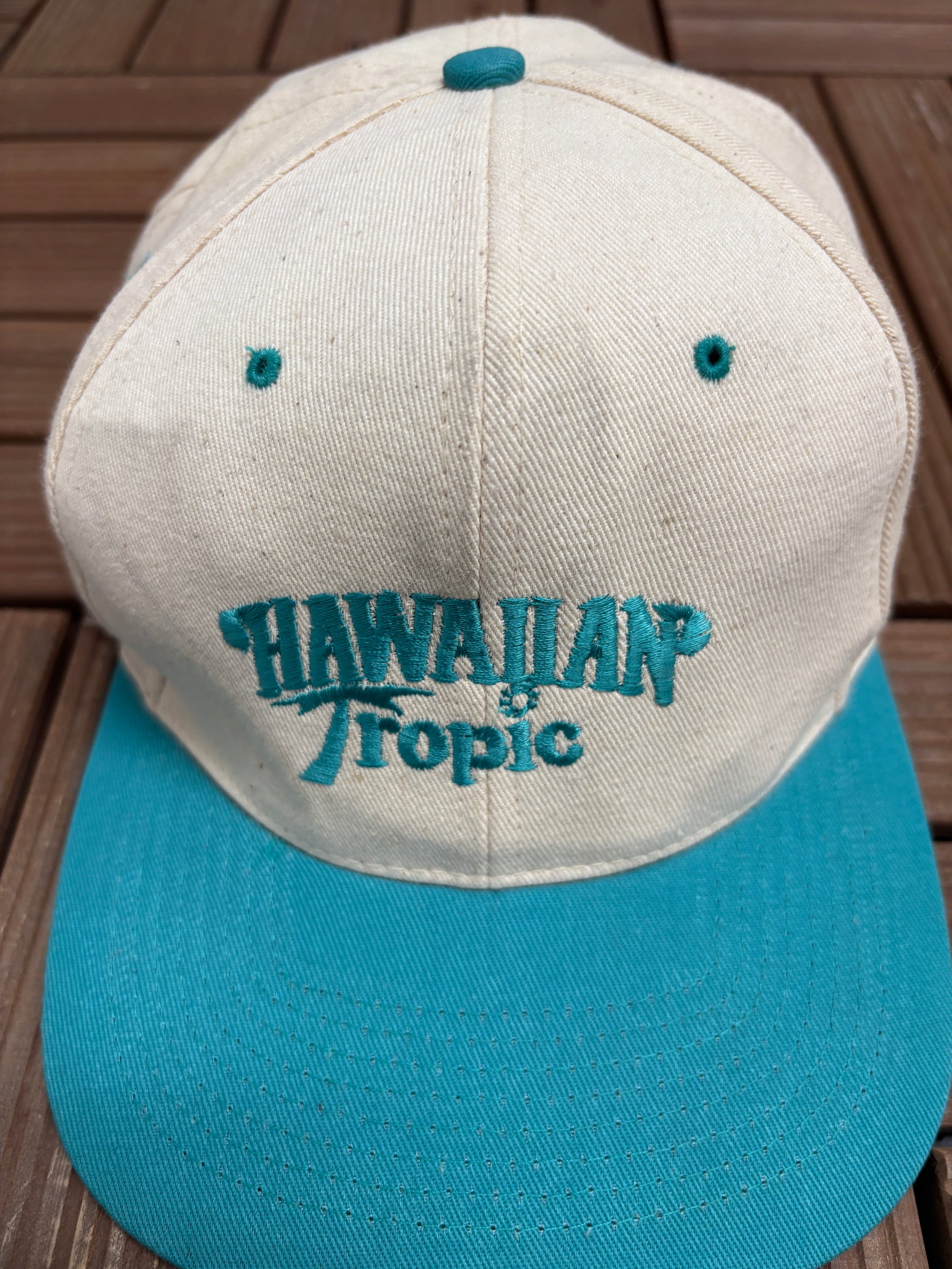Hawaiian Tropic Embroidered Graphic Hat | Snap Back | Vintage 1990s Promotional White Cap |
