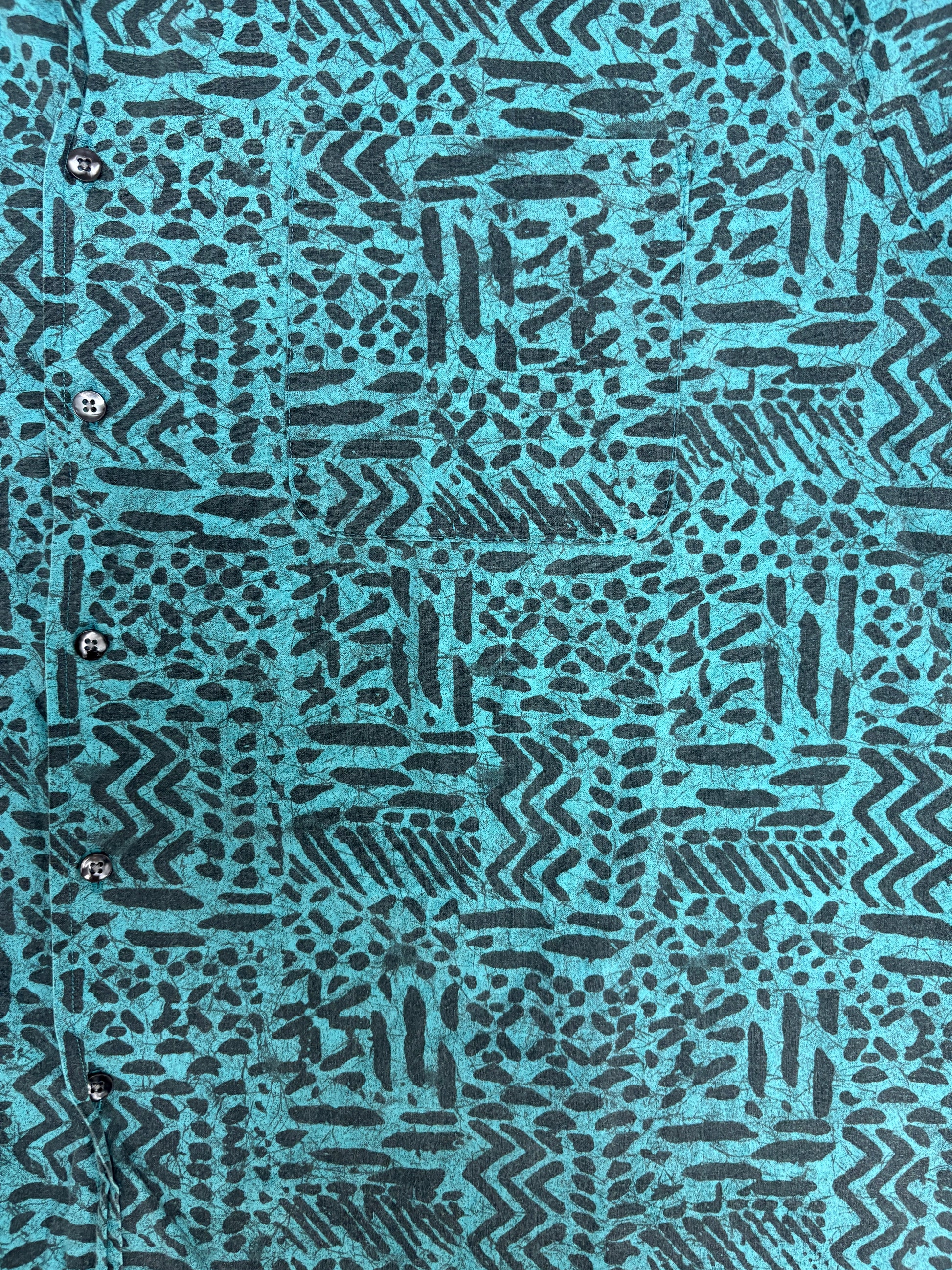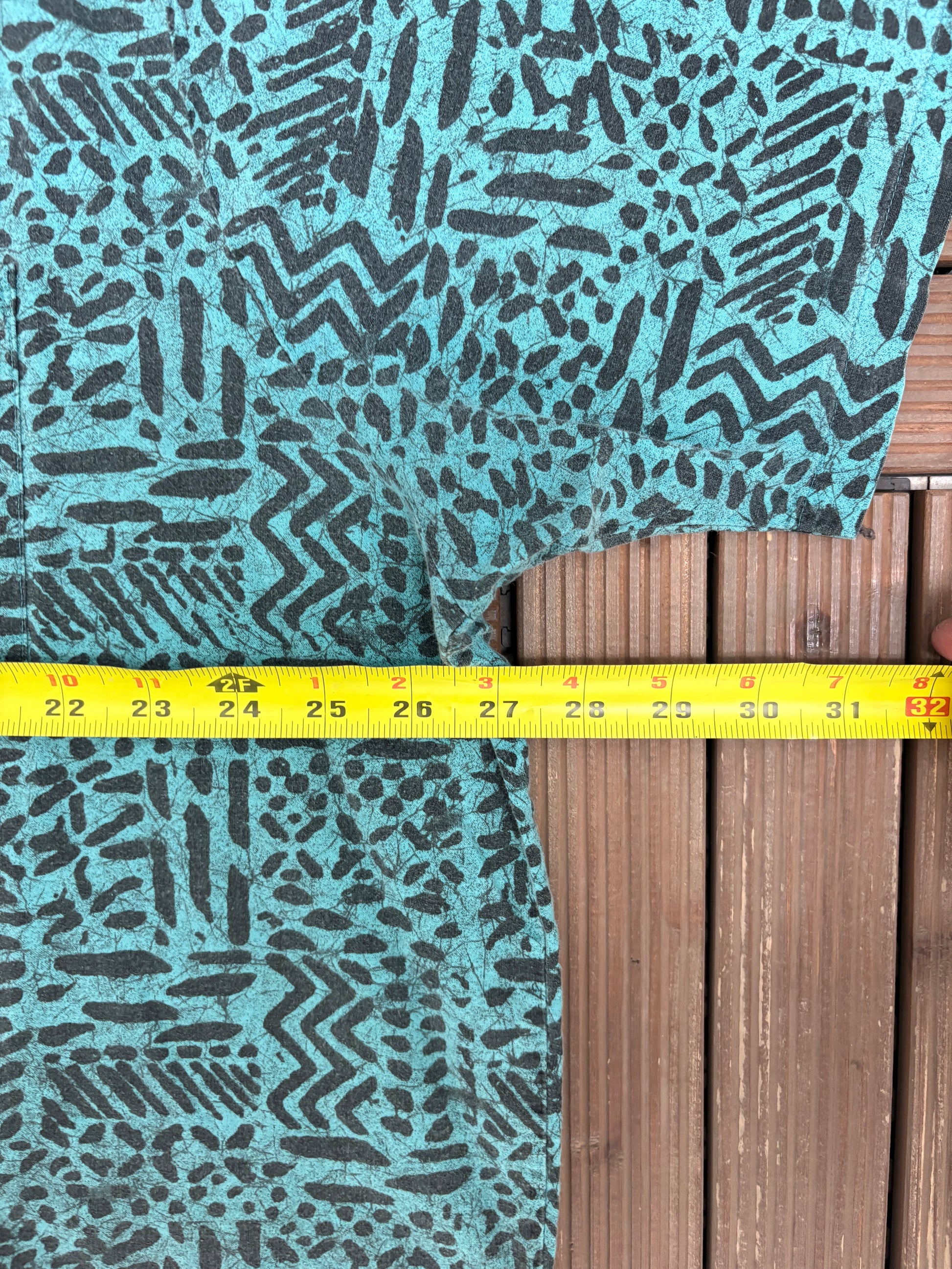 Teal Abstract Button Down Tee | Size X-Large | Vintage 1990s Casual Button Down Shirt |