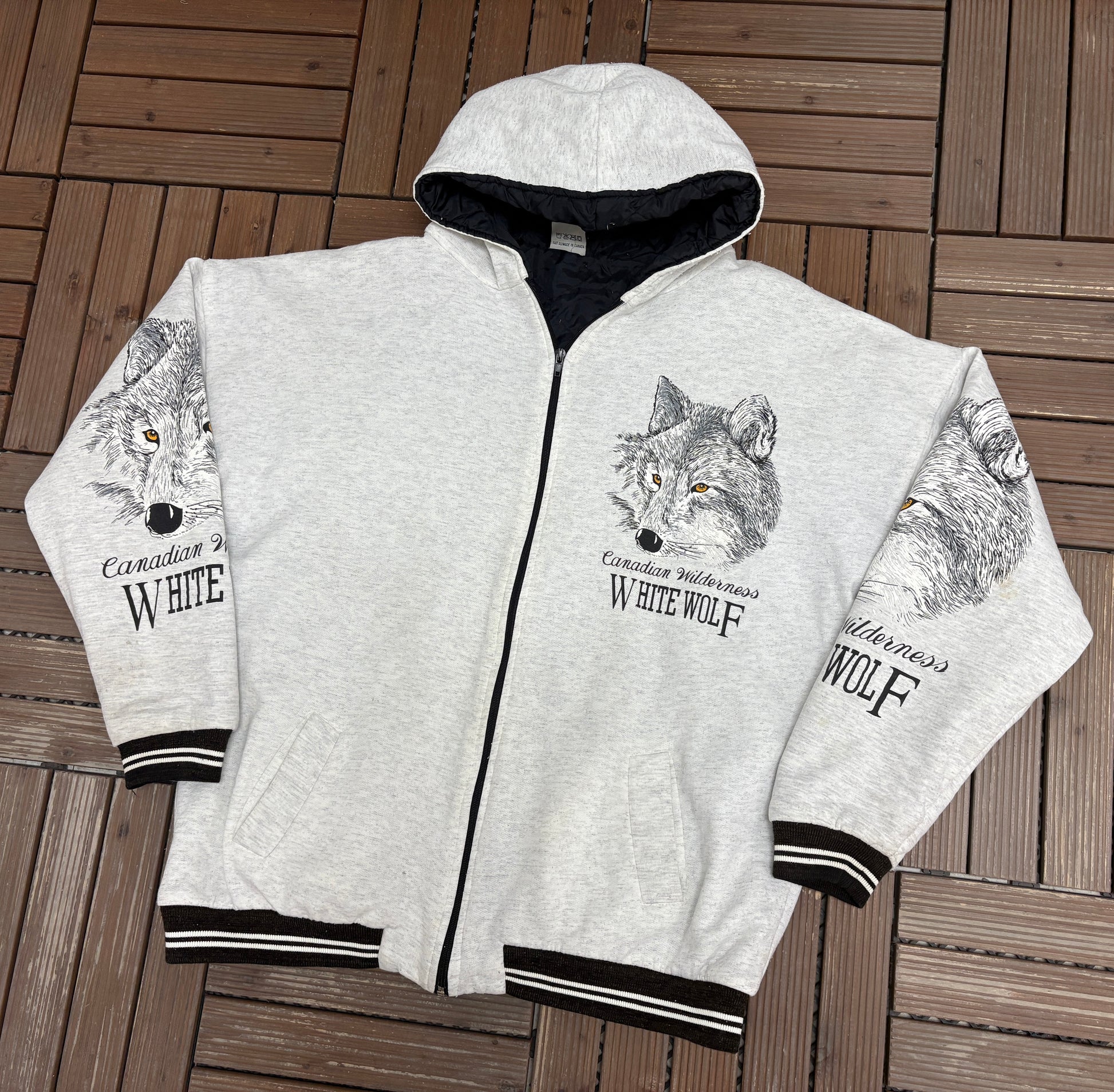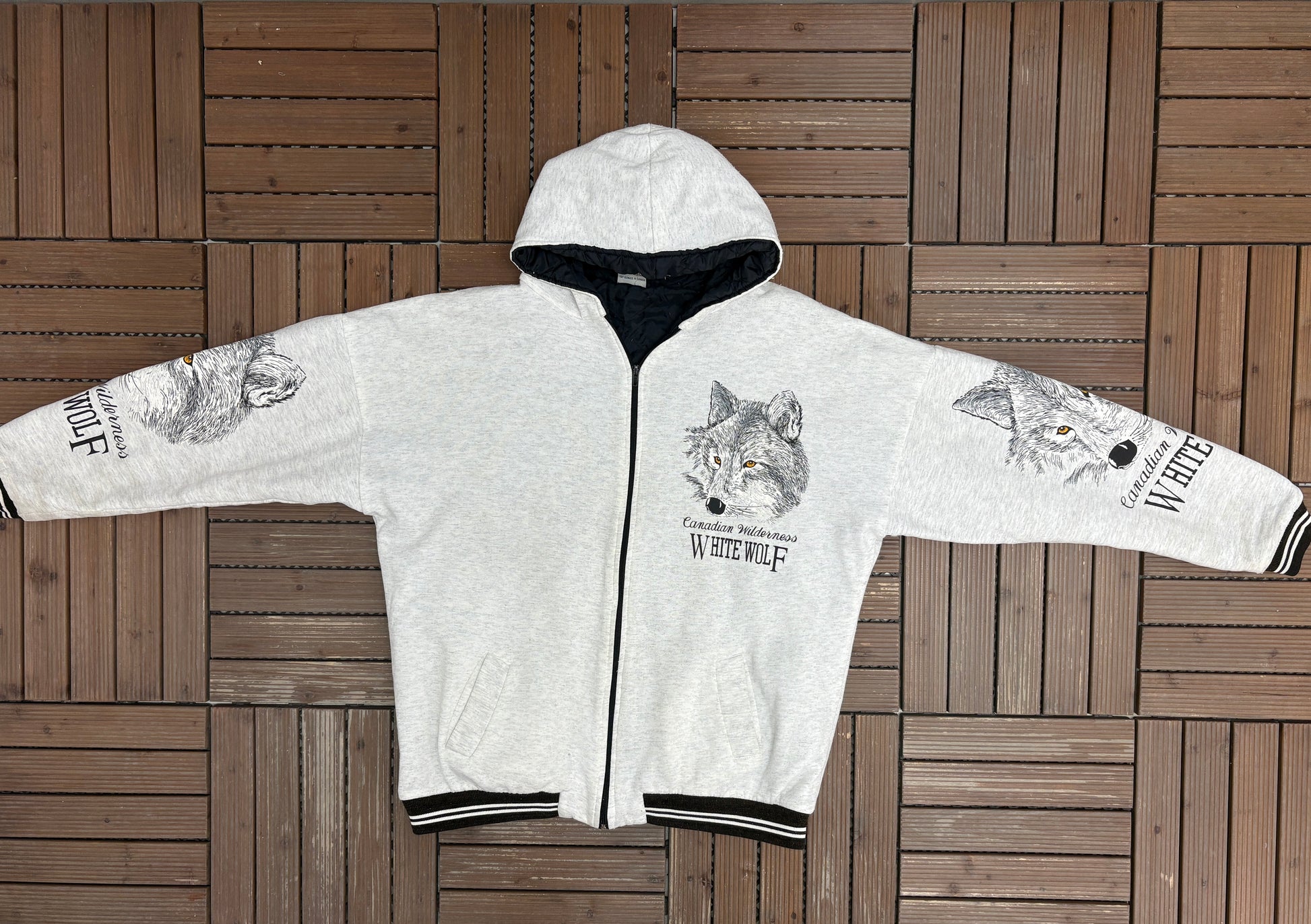 Canadian Wilderness White Wolf Graphic Hoodie | Size XX-Large | Vintage 1990s Animal Grey Sweater |