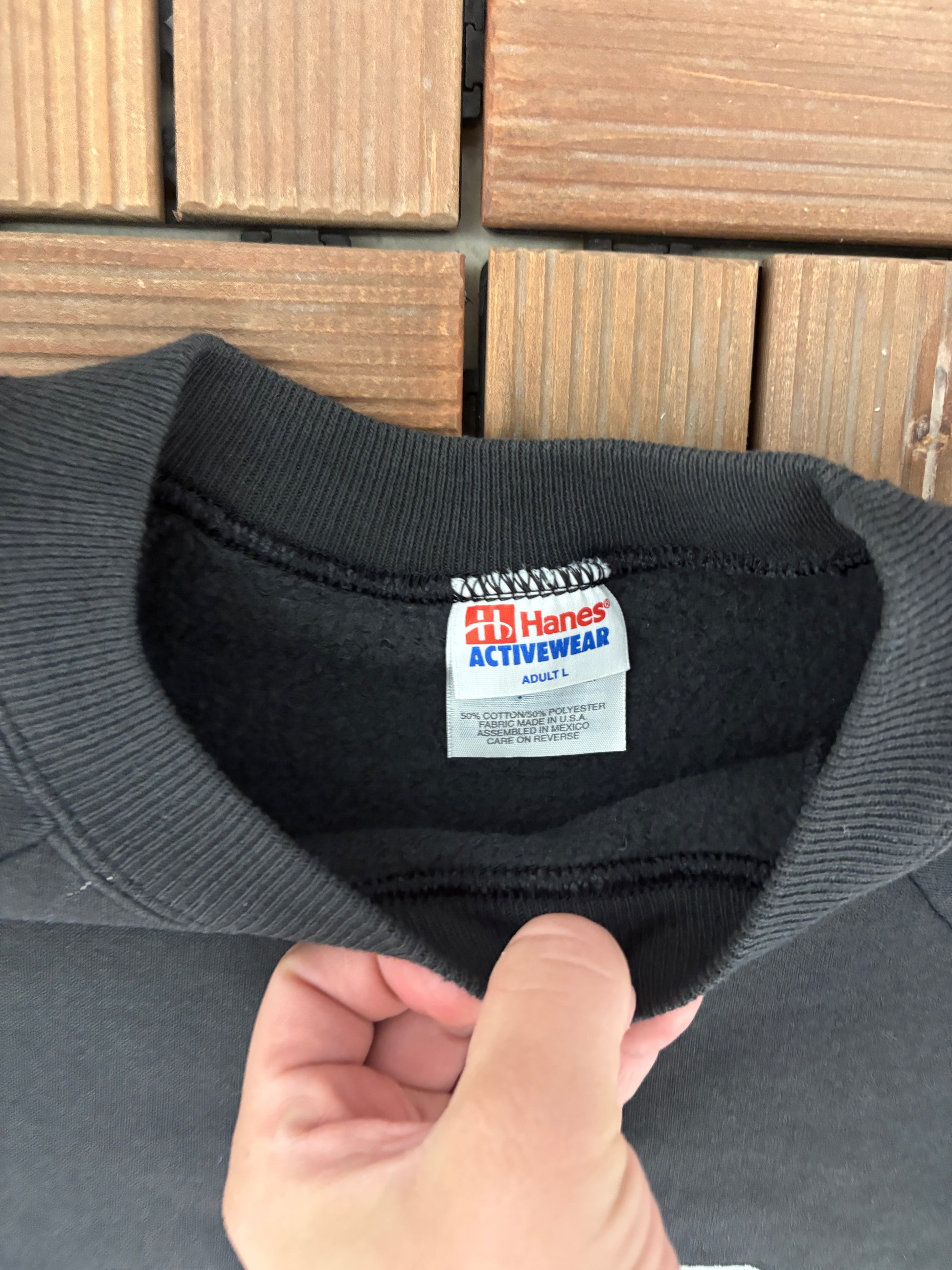 Chicago Basketball Graphic Crewneck | Size Large | Vintage 1980s Basketball Black Sweater |