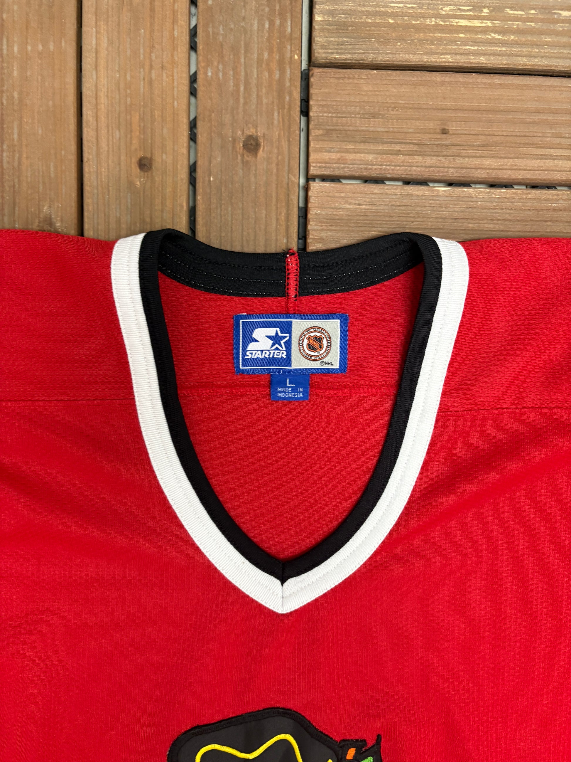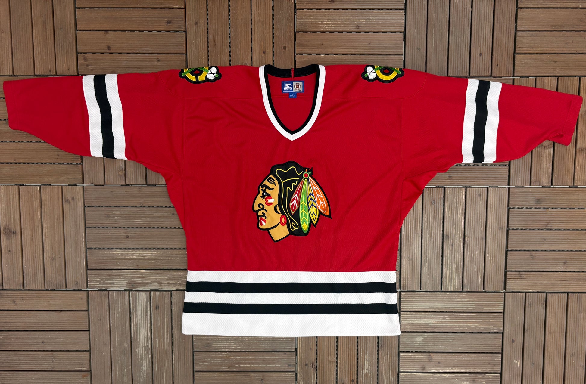 Chicago Blackhawks Stitched Hockey Jersey | Size Large | Vintage 1990s Starter NHL Hockey Red Jersey |