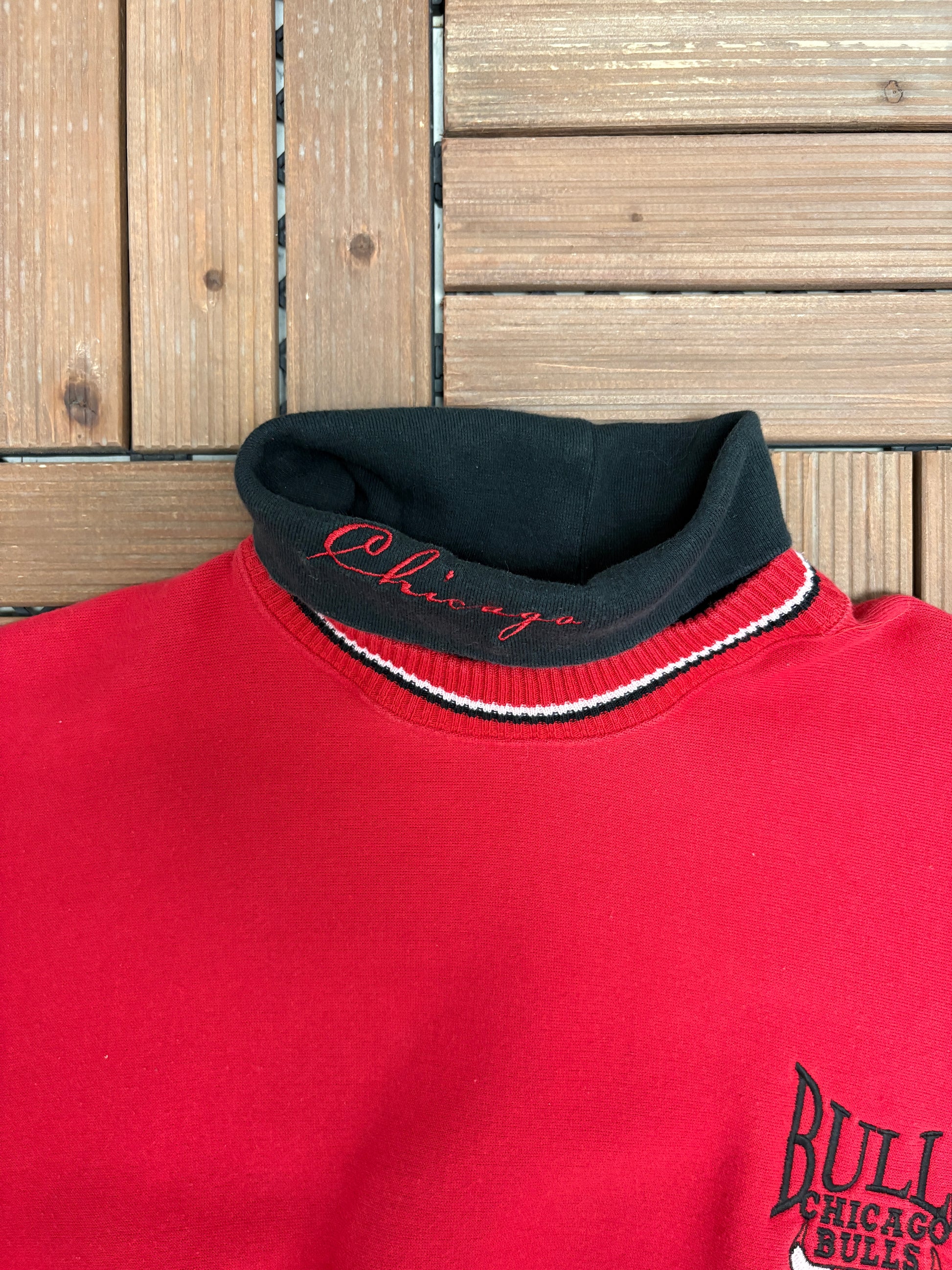 Chicago Bulls Embroidered Turtleneck Graphic Crewneck | Size X-Large | Vintage 1990s NBA Basketball Red Sweater |