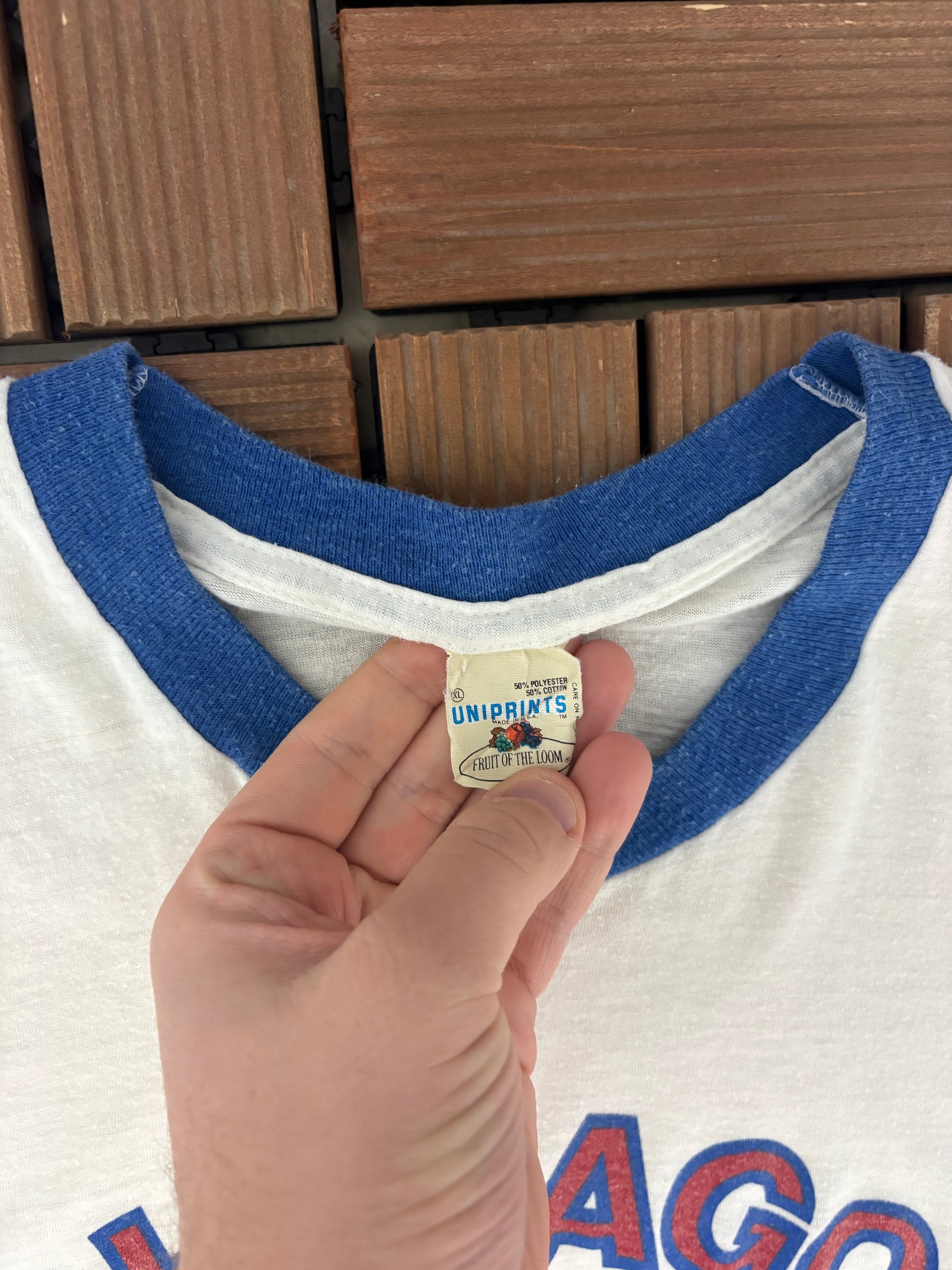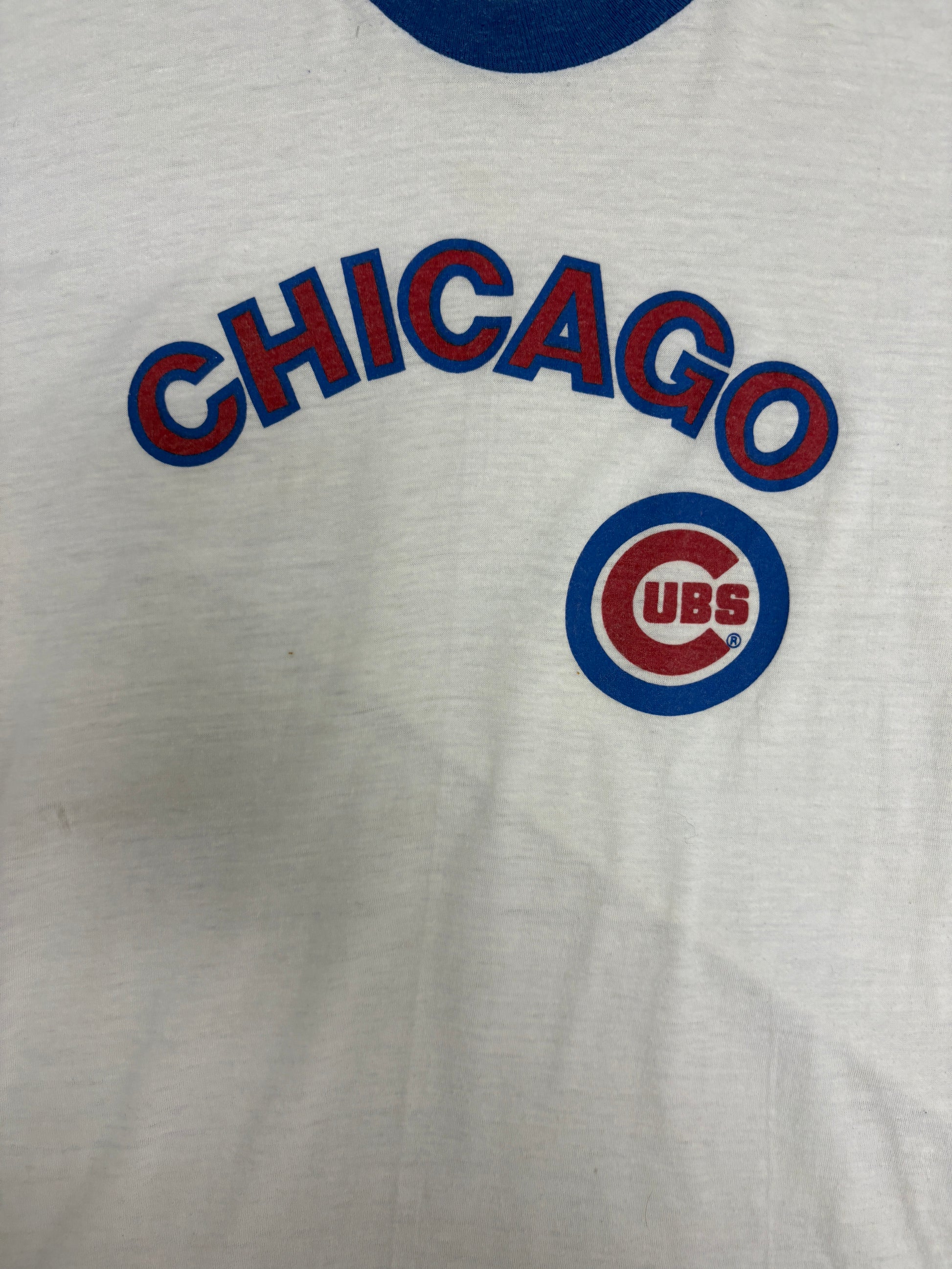 Chicago Cubs Graphic Tee | Size X-Large | Vintage 1980s MLB Baseball White T-Shirt |