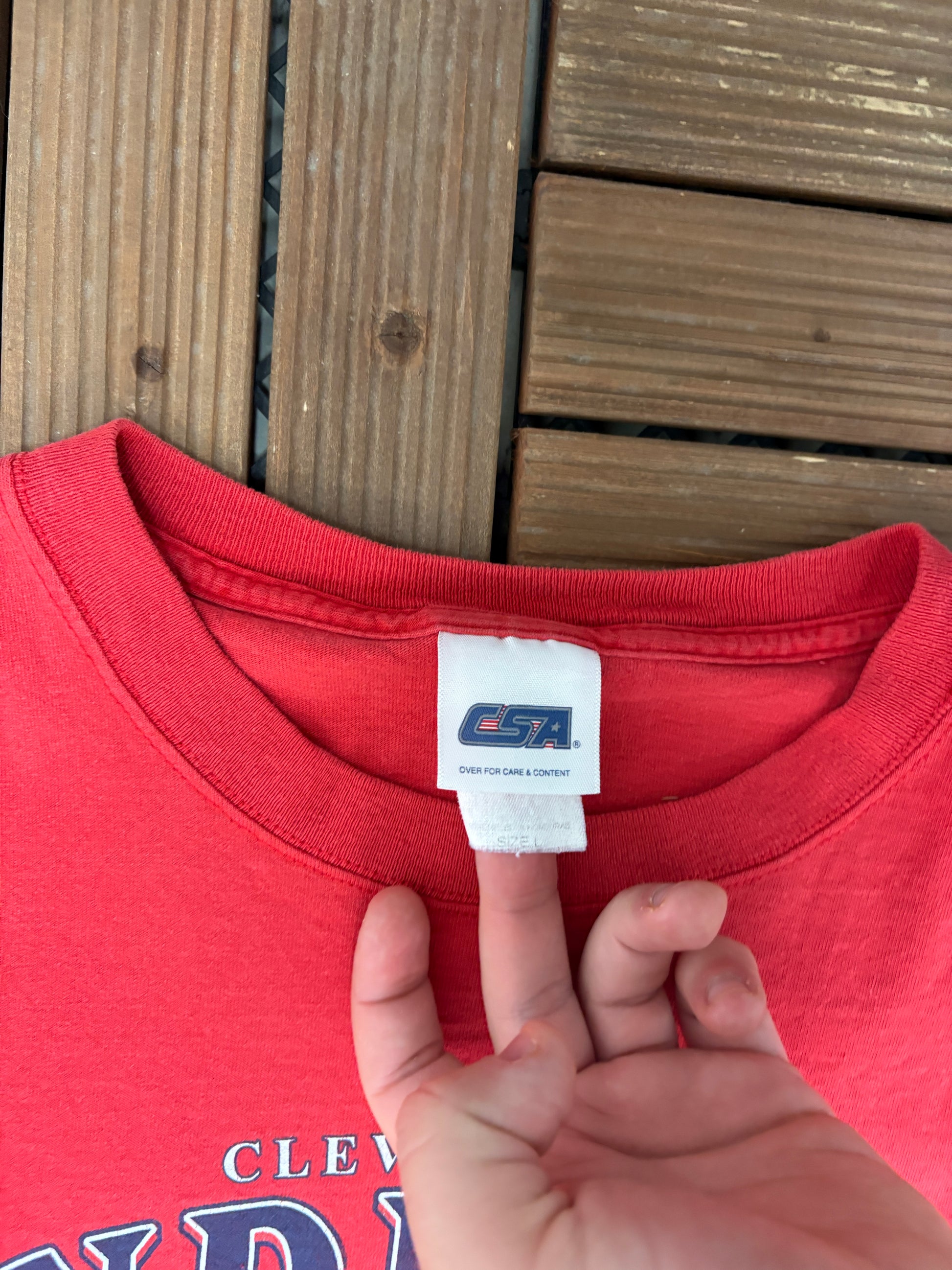 Cleveland Indians Graphic Tee | Size Large | Vintage 2000s MLB Baseball Red T-Shirt |
