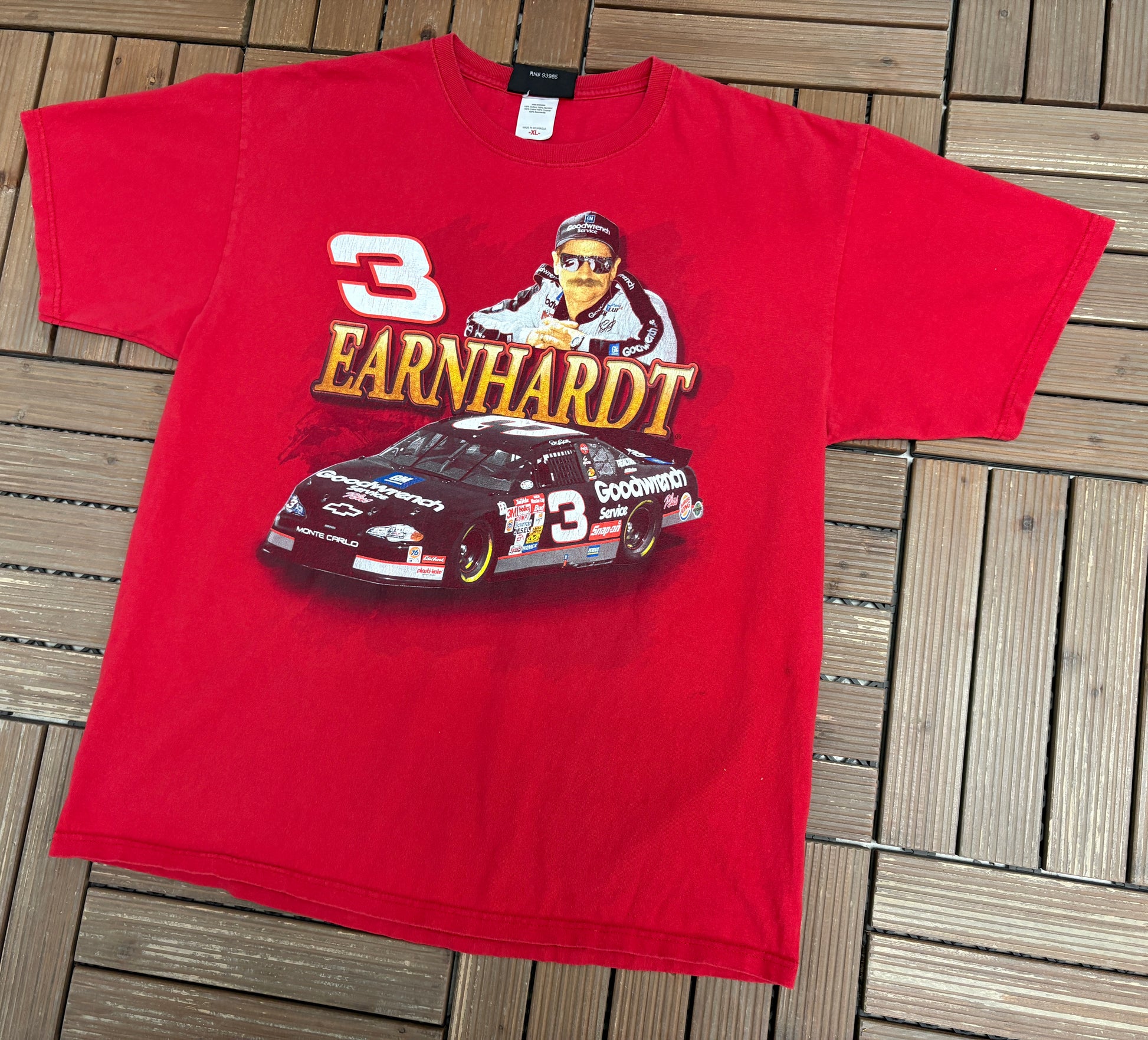 Dale Earnhardt NASCAR Graphic Tee | Size X-Large | Vintage 2000s NASCAR Racing Red T-Shirt |