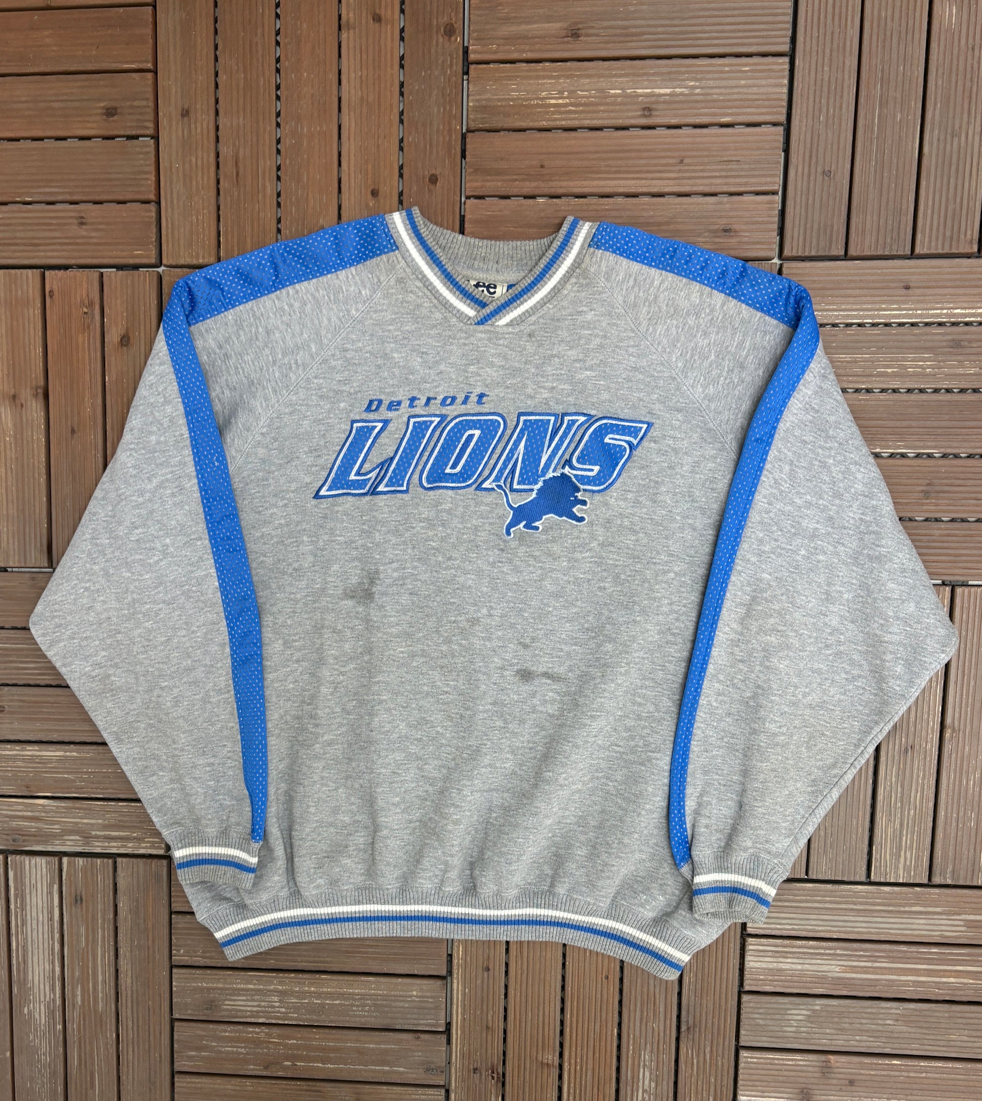 Detroit Lions Stitched Graphic Crewneck | Size XX-Large | Vintage 2000s NFL Football Grey Sweater |