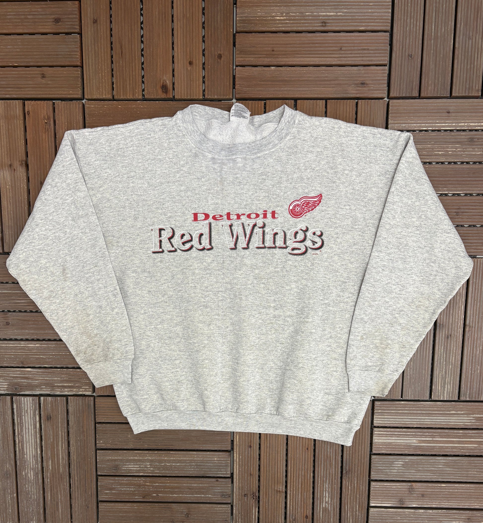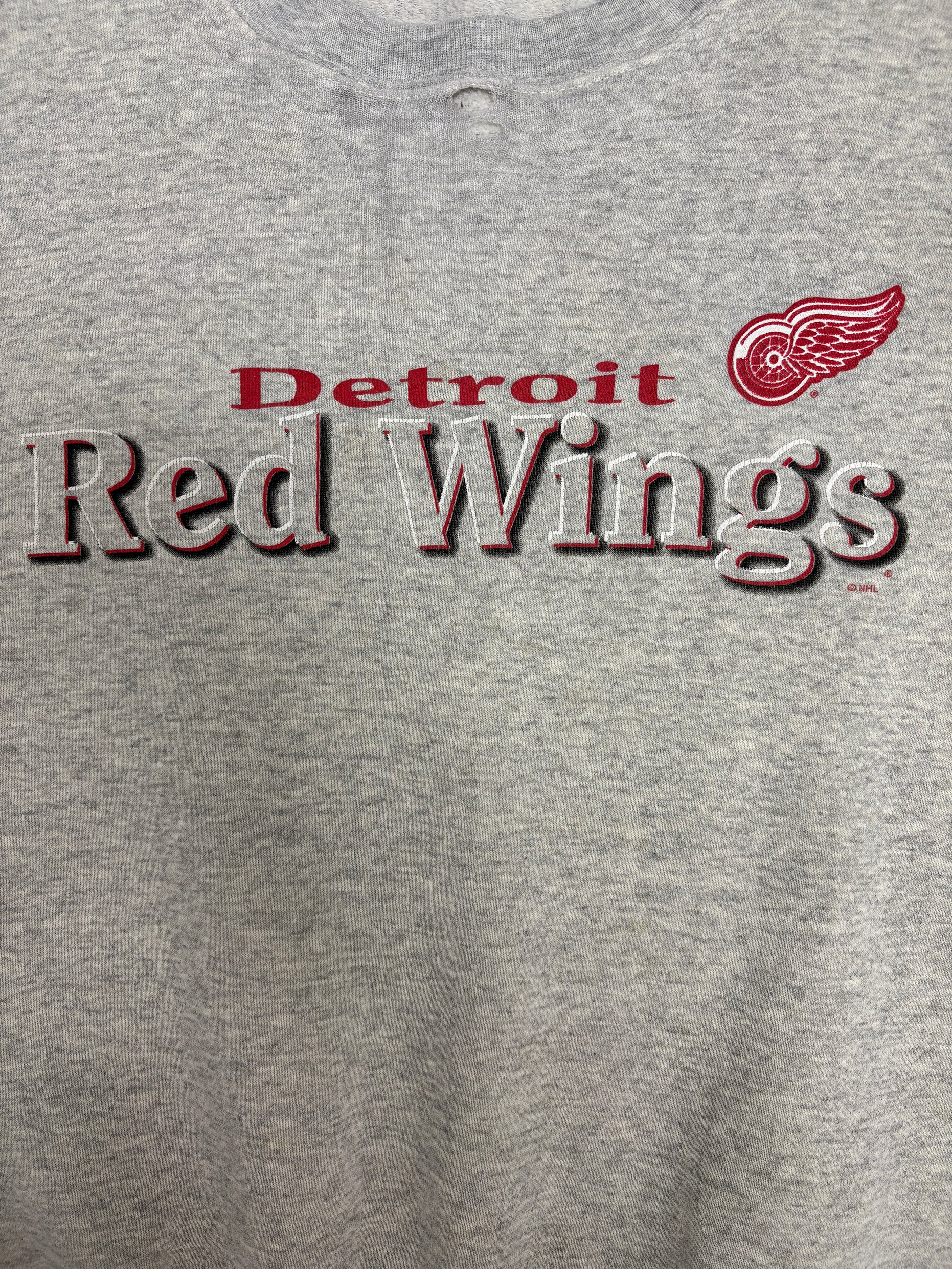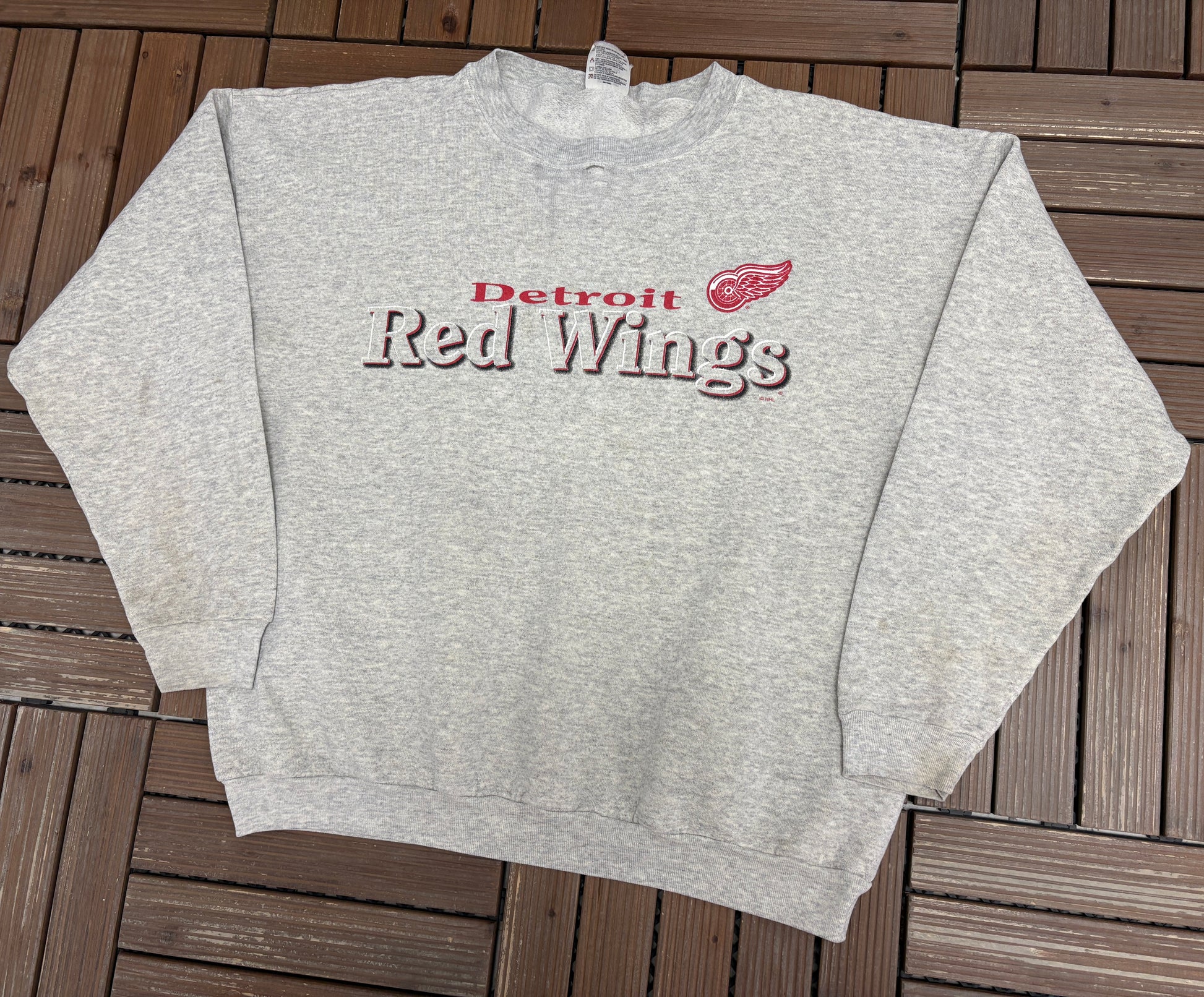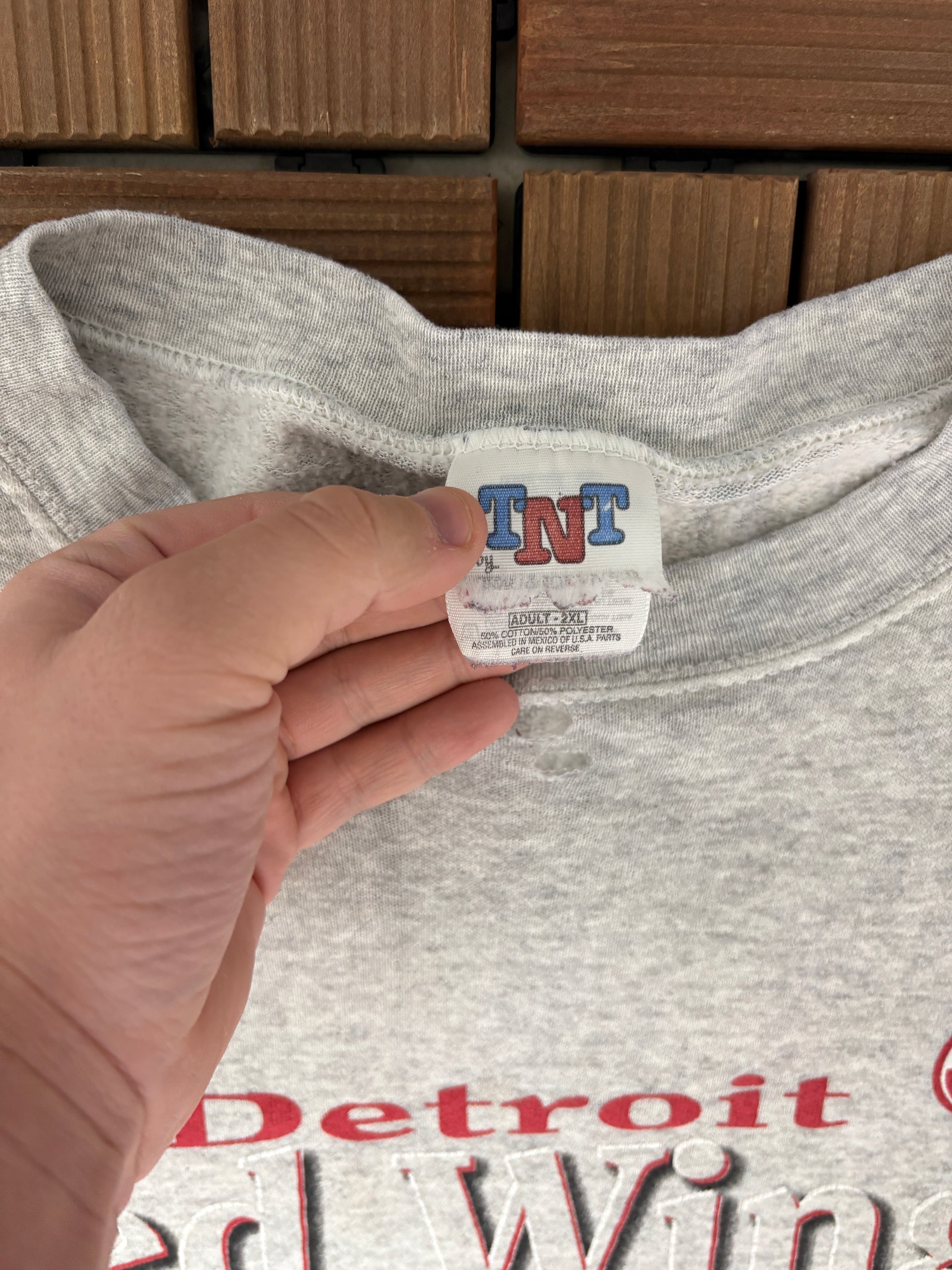 Detroit Red Wings Graphic Crewneck | Size XX-Large | Vintage 1990s NHL Hockey Grey Sweater |