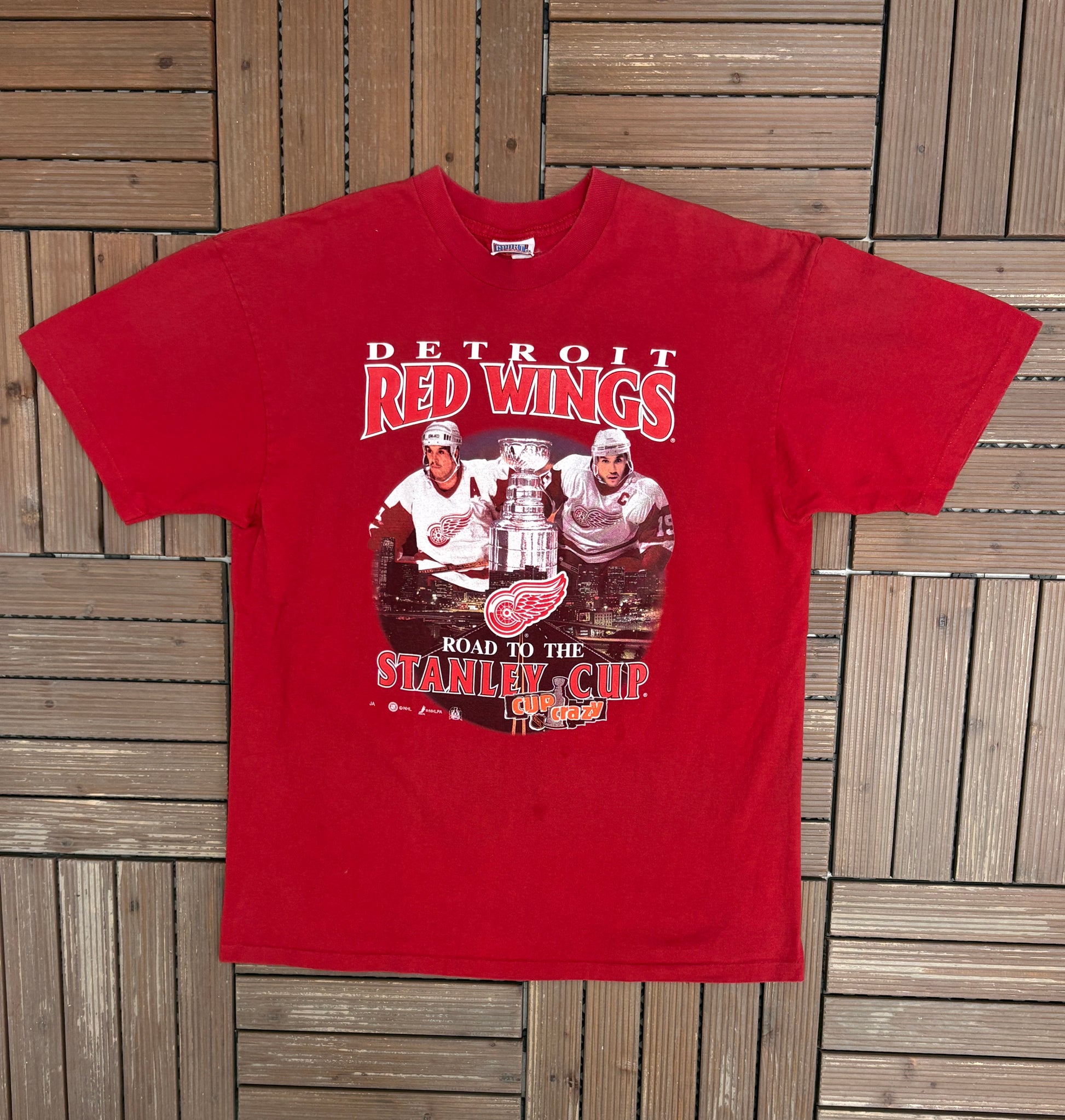 Detroit Red Wings Road To The Stanley Cup Graphic Tee | Size X-Large | Vintage 1990s NHL Hockey Red T-Shirt |