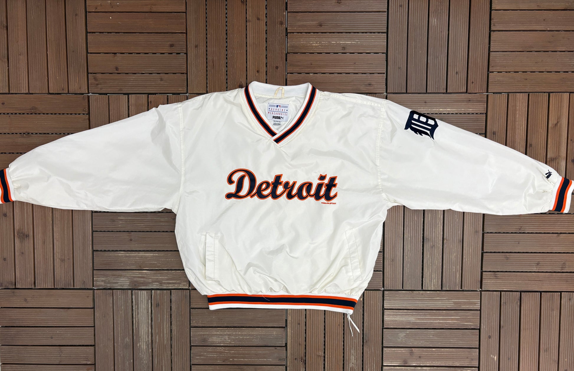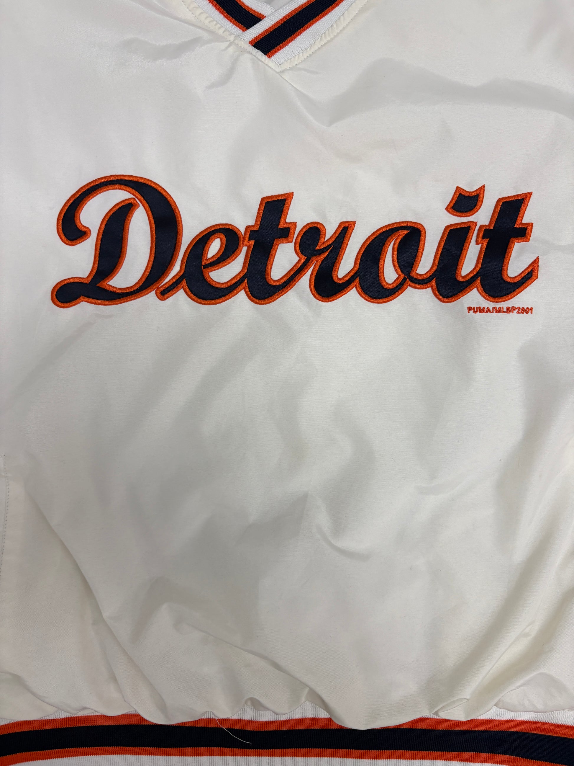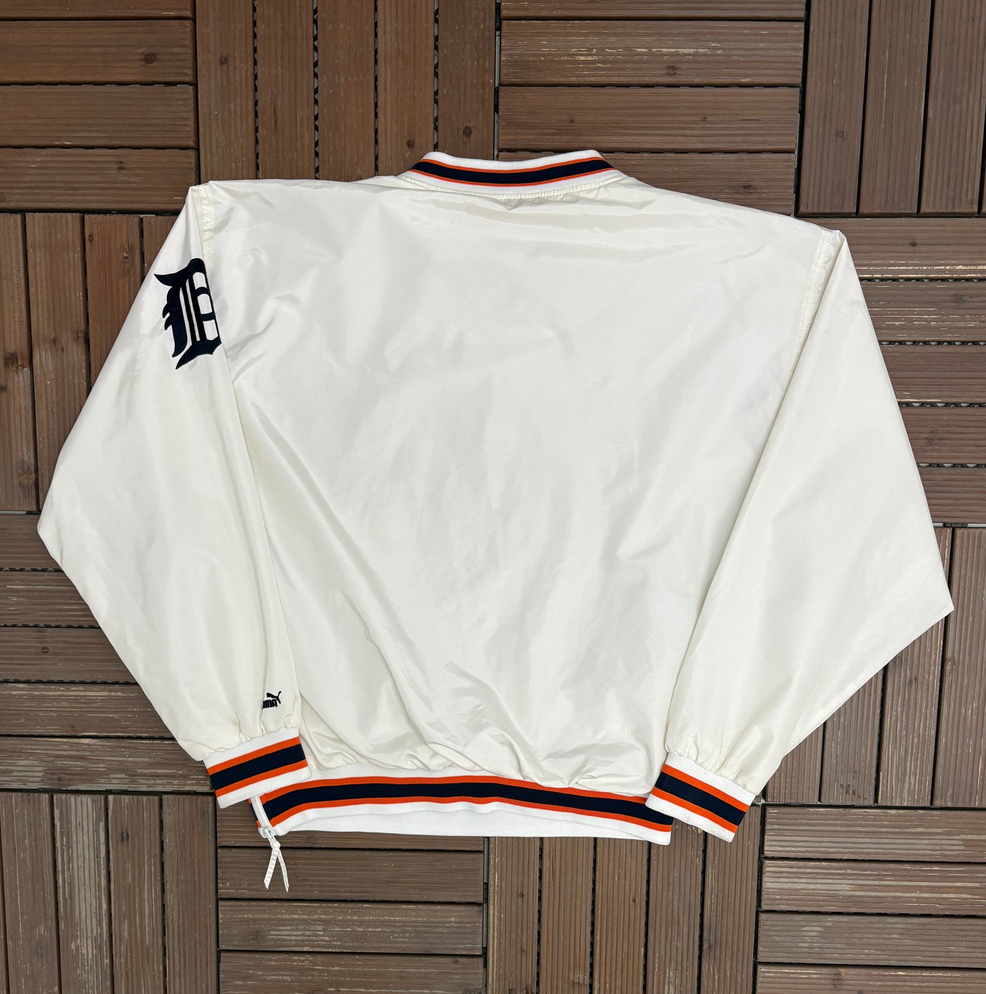 Detroit Tigers Stitched Windbreaker | Size X-Large | Vintage 2000s MLB Baseball White Jacket |