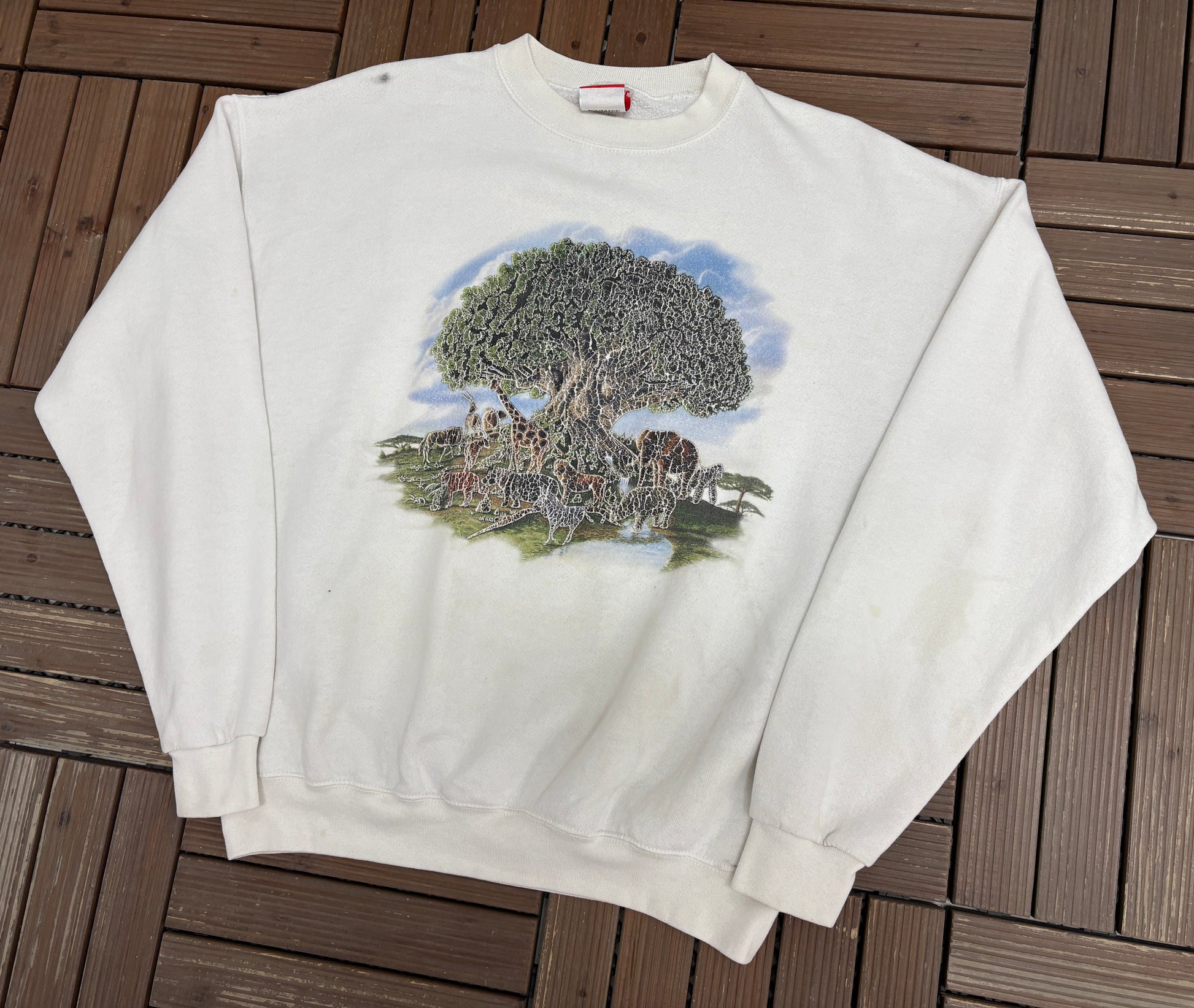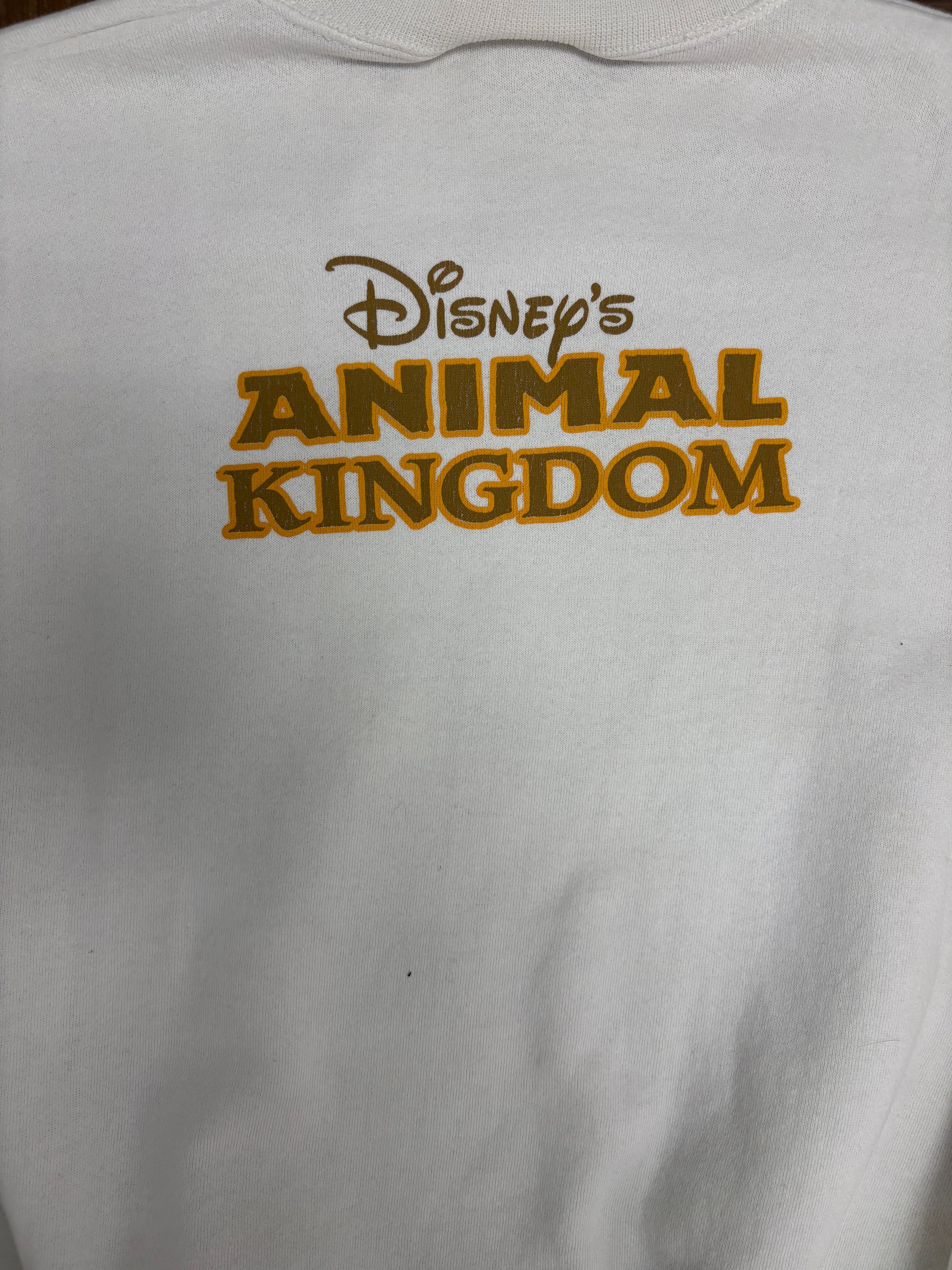 Disney's Animal Kingdom Graphic Crewneck | Size X-Large | Vintage 1990s White Cartoon Promotional Sweater |