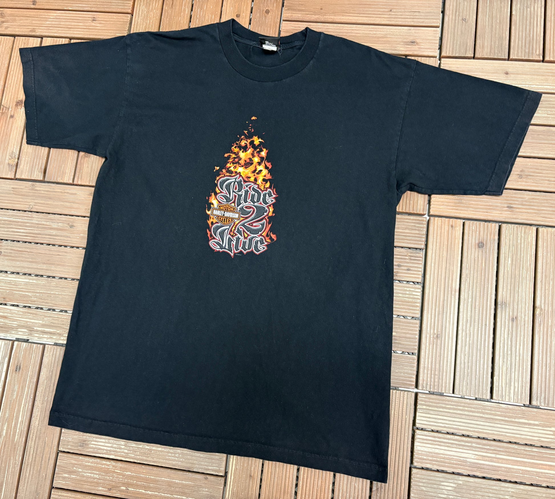 Harley Davidson Battle Creek, Michigan Graphic Tee | Size X-Large | Vintage 2000s Biker Black T-Shirt |