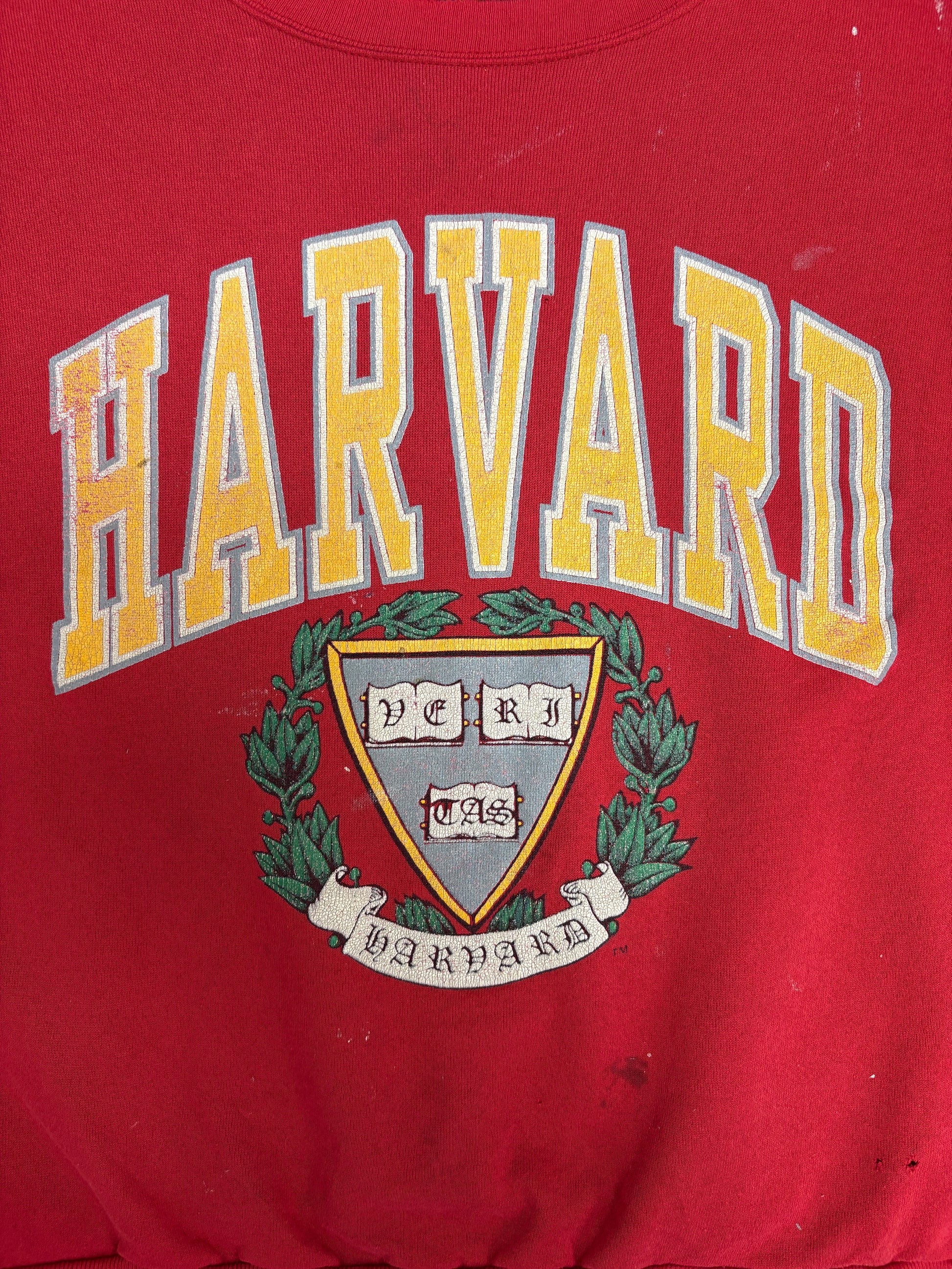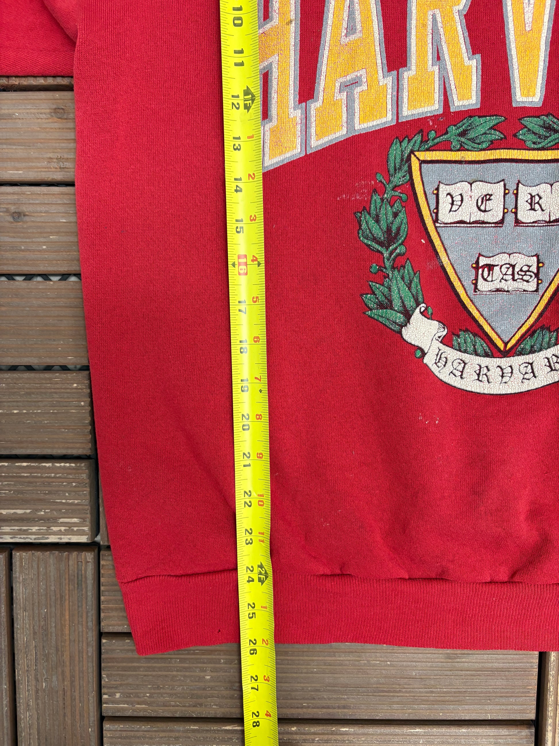 Harvard Crimson Graphic Crewneck | Size X-Large | Vintage 1990s College Distressed Red Sweater |