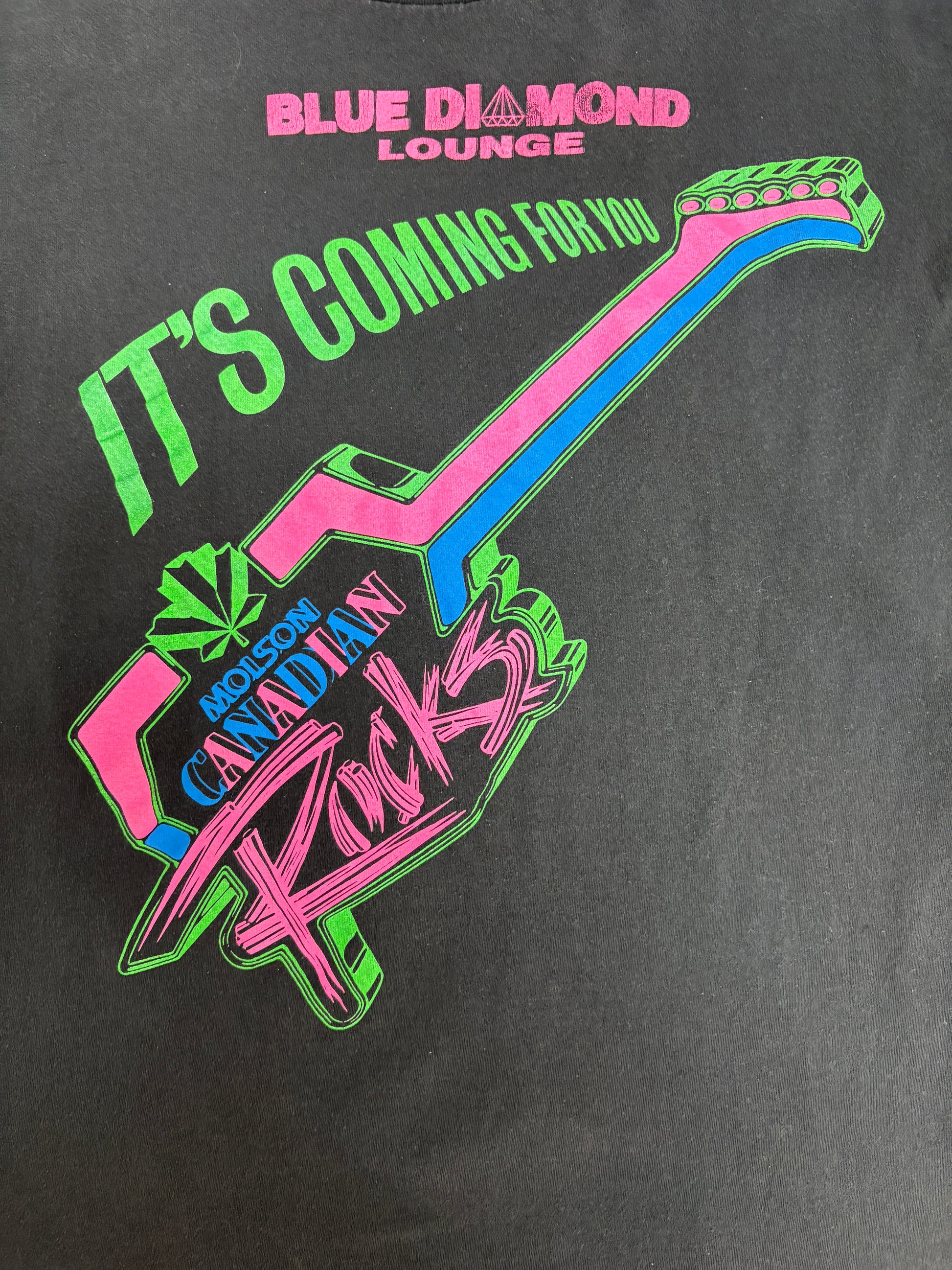 Molson Canadian Rocks Blue Diamond Lounge Graphic Tee | Size X-Large | Vintage 1990s Promotional Black T-Shirt |