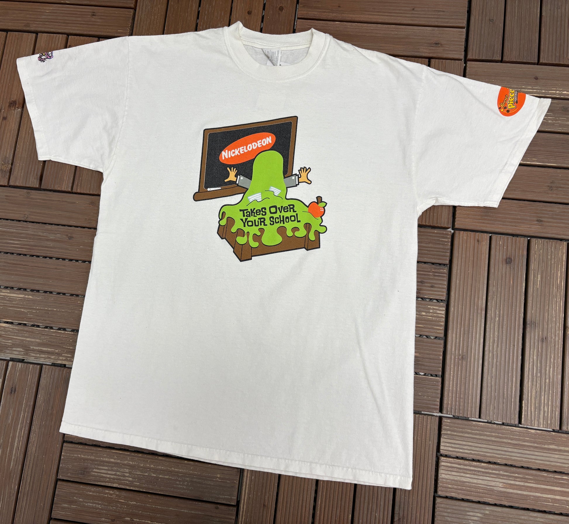 Nickelodeon Takes Over Your School Graphic Tee | Size X-Large | Vintage 1990s Cartoon White T-Shirt |