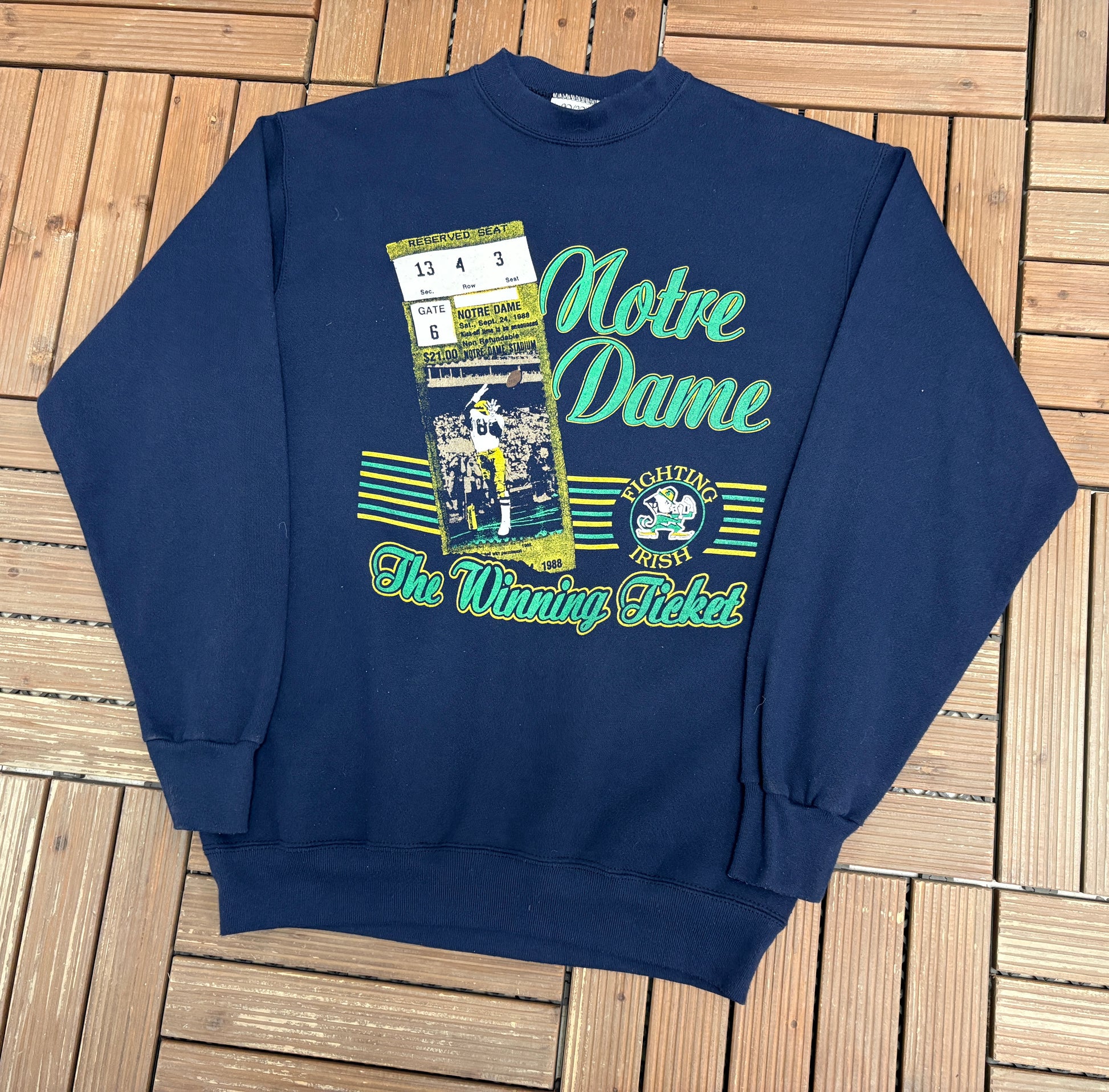 Notre Dame Fighting Irish The Winning Ticket Graphic Crewneck | Size Large | Vintage 1980s College Blue Sweater |