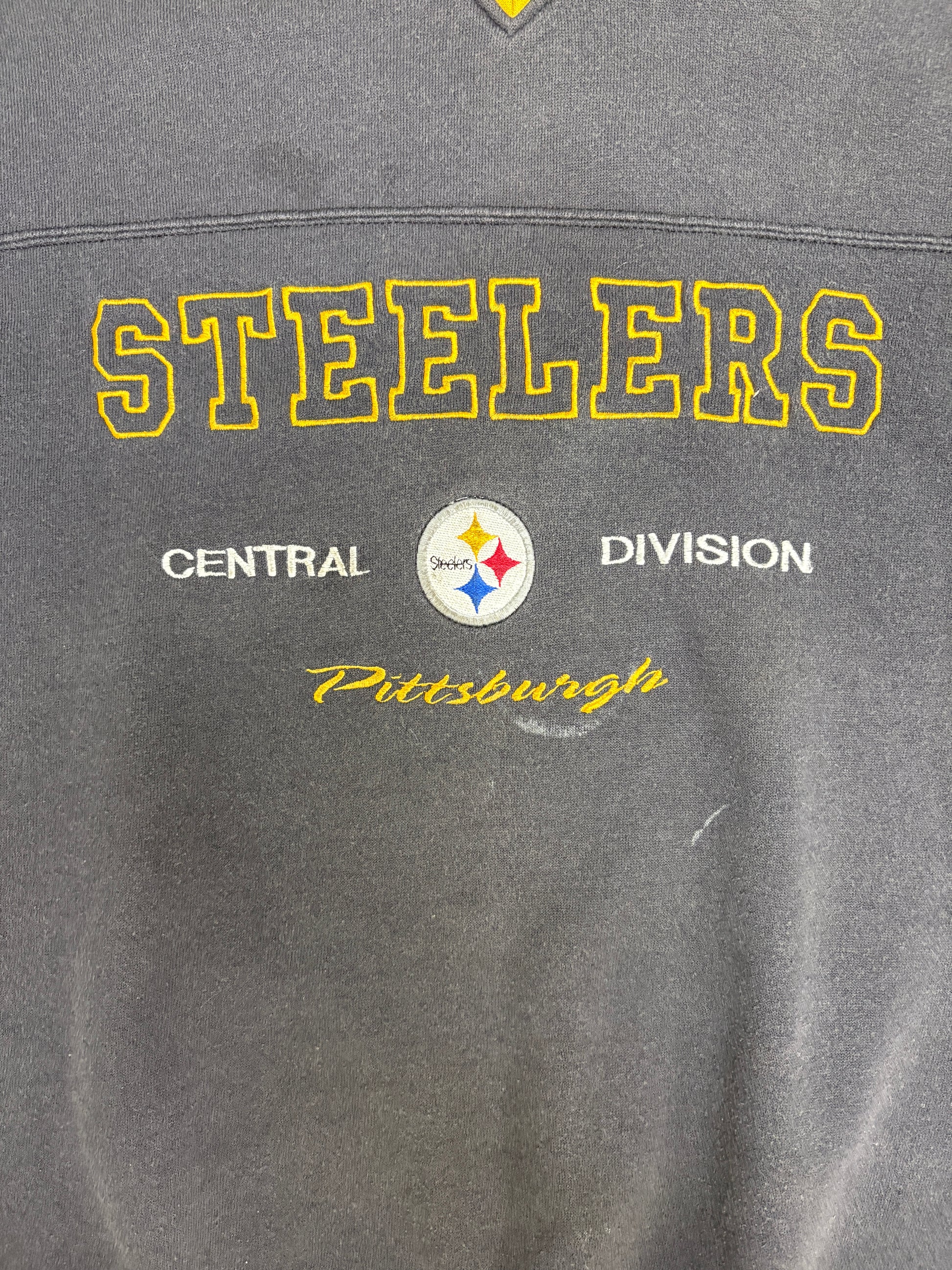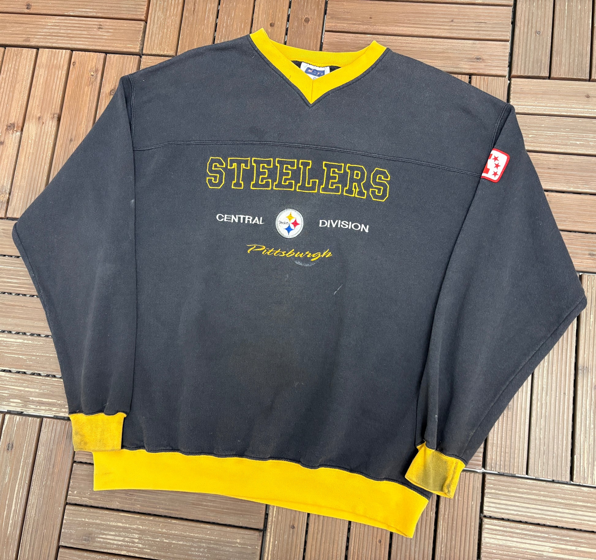 Pittsburgh Steelers Embroidered Graphic Crewneck | Size Large | Vintage 1990s Football Black Sweater |