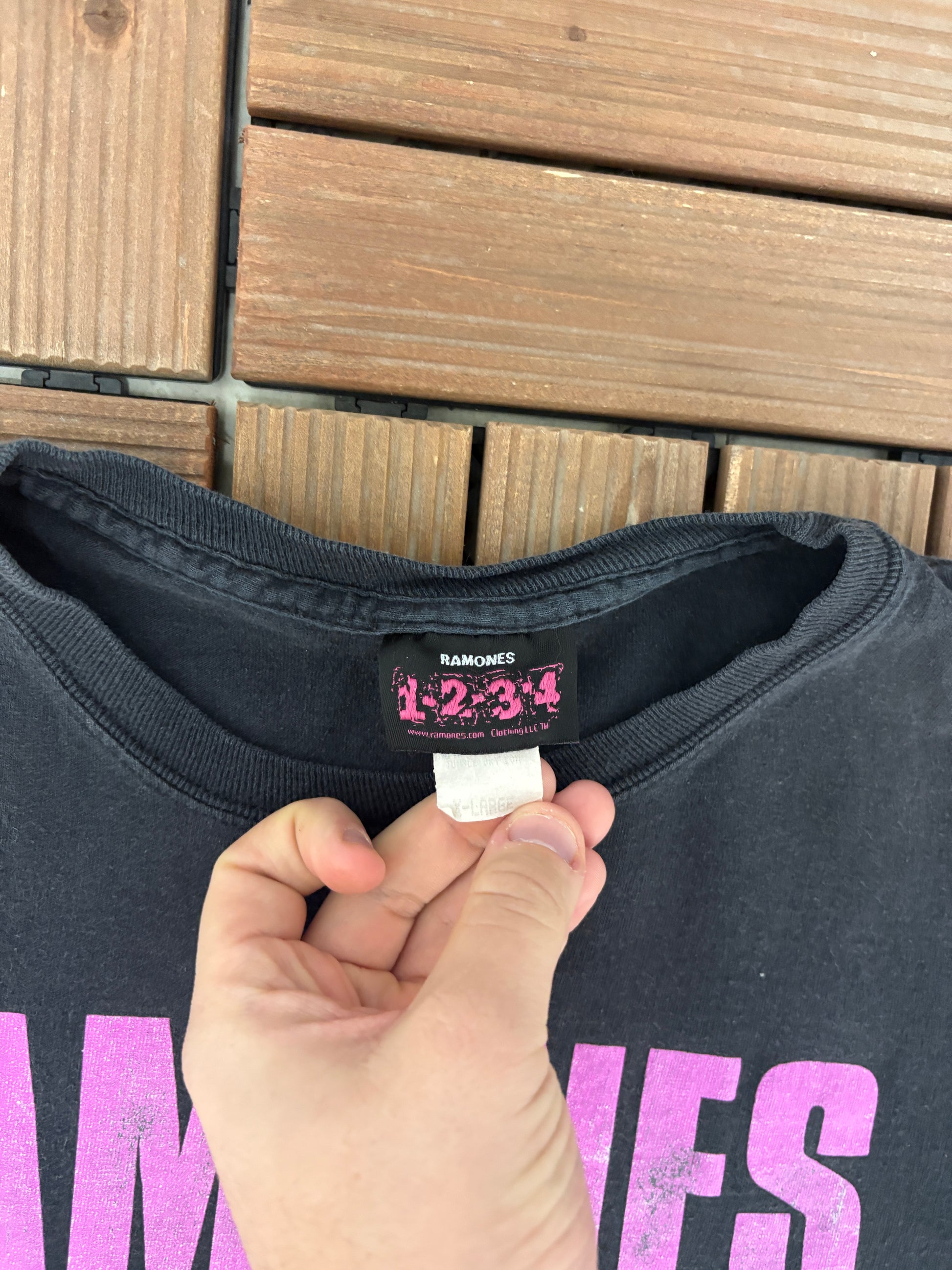 Ramones Gabba Gabba Hey Graphic Tee | Size X-Large | Vintage 2000s Rock Band Black T-Shirt |