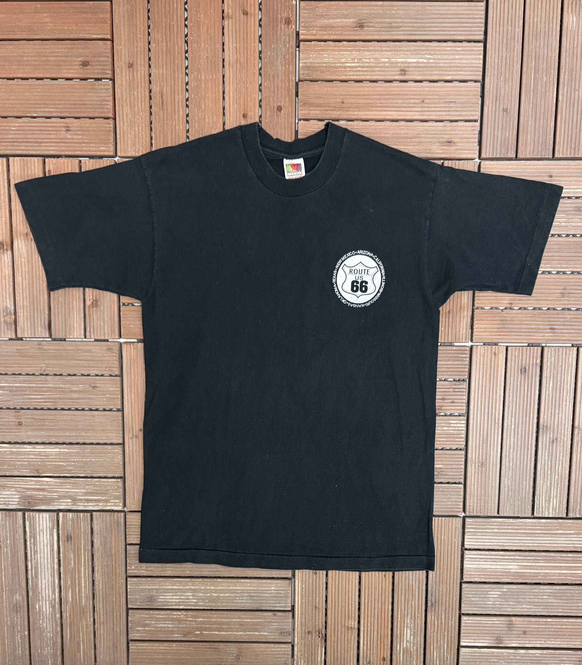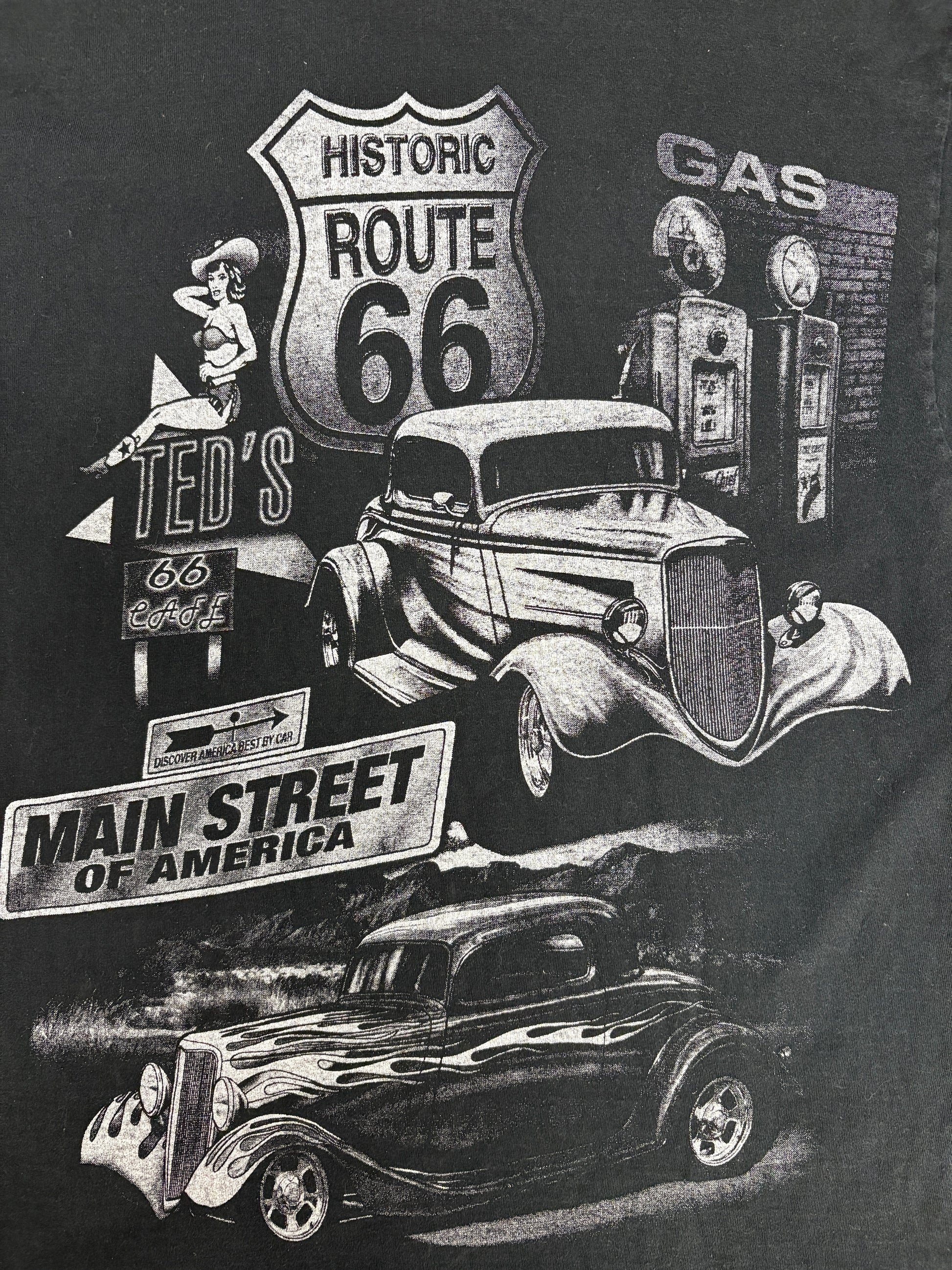 Route 66 Main Street Of America Graphic Tee | Size Large | Vintage 1990s Black Tourist T-Shirt |
