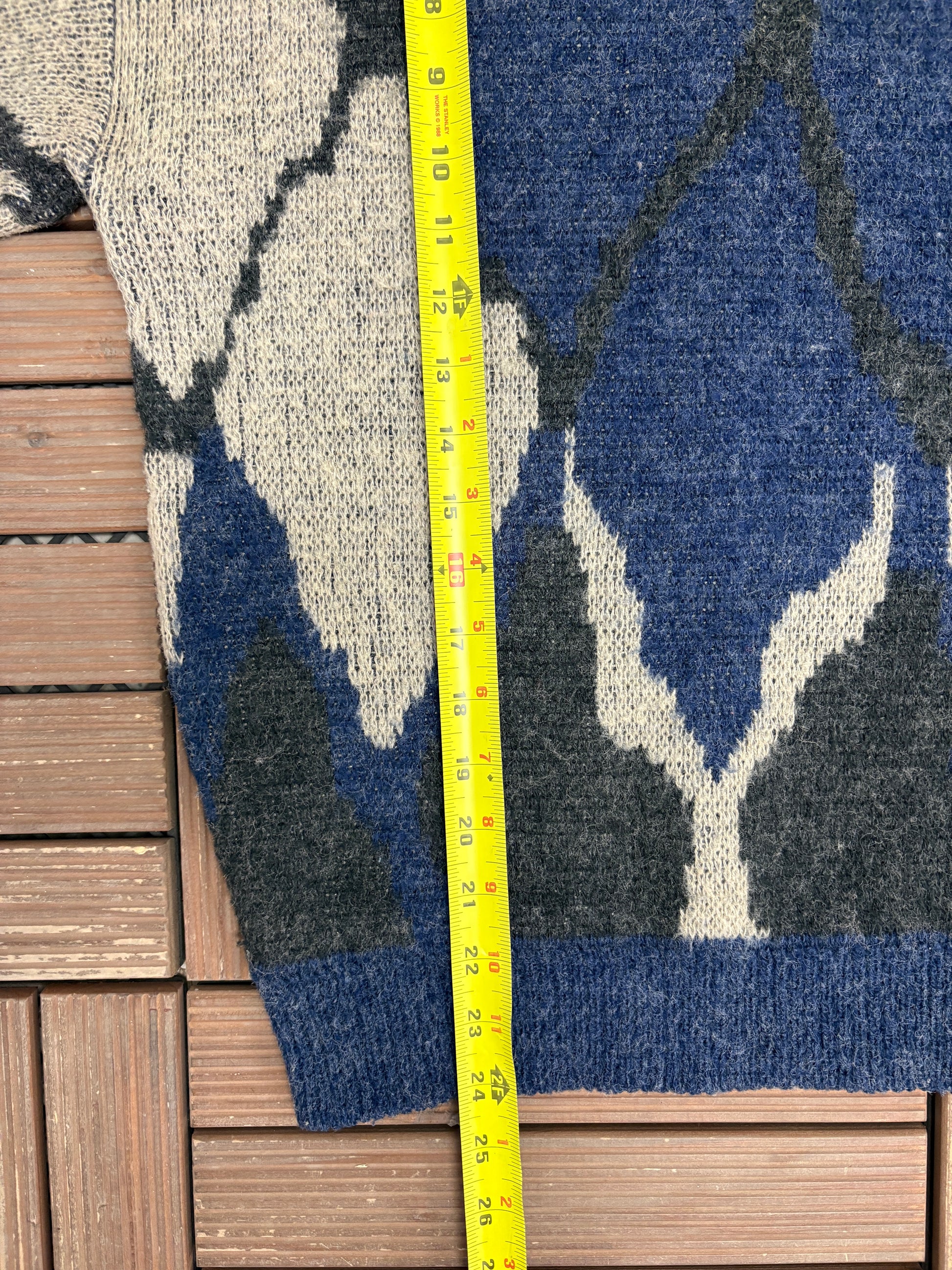 Saturdays Abstract Pattern Knit Sweater | Size Large | Vintage 1980s Knit Blue Sweatshirt |