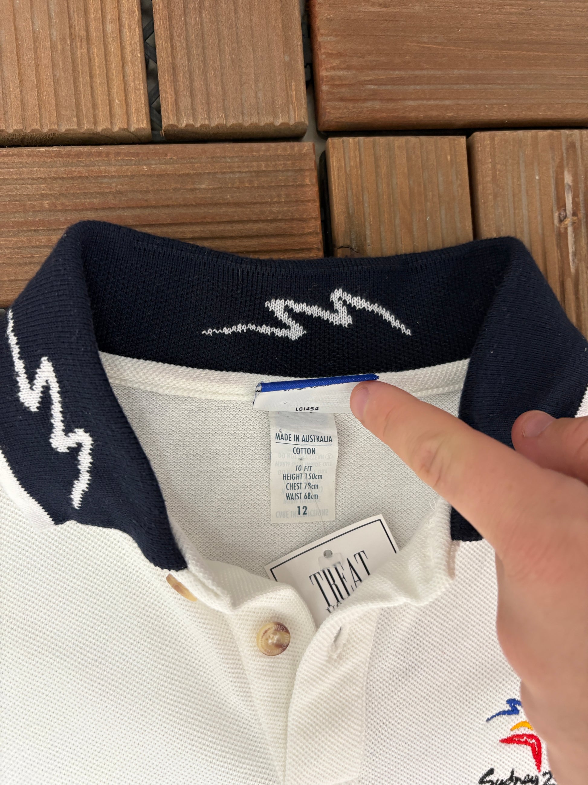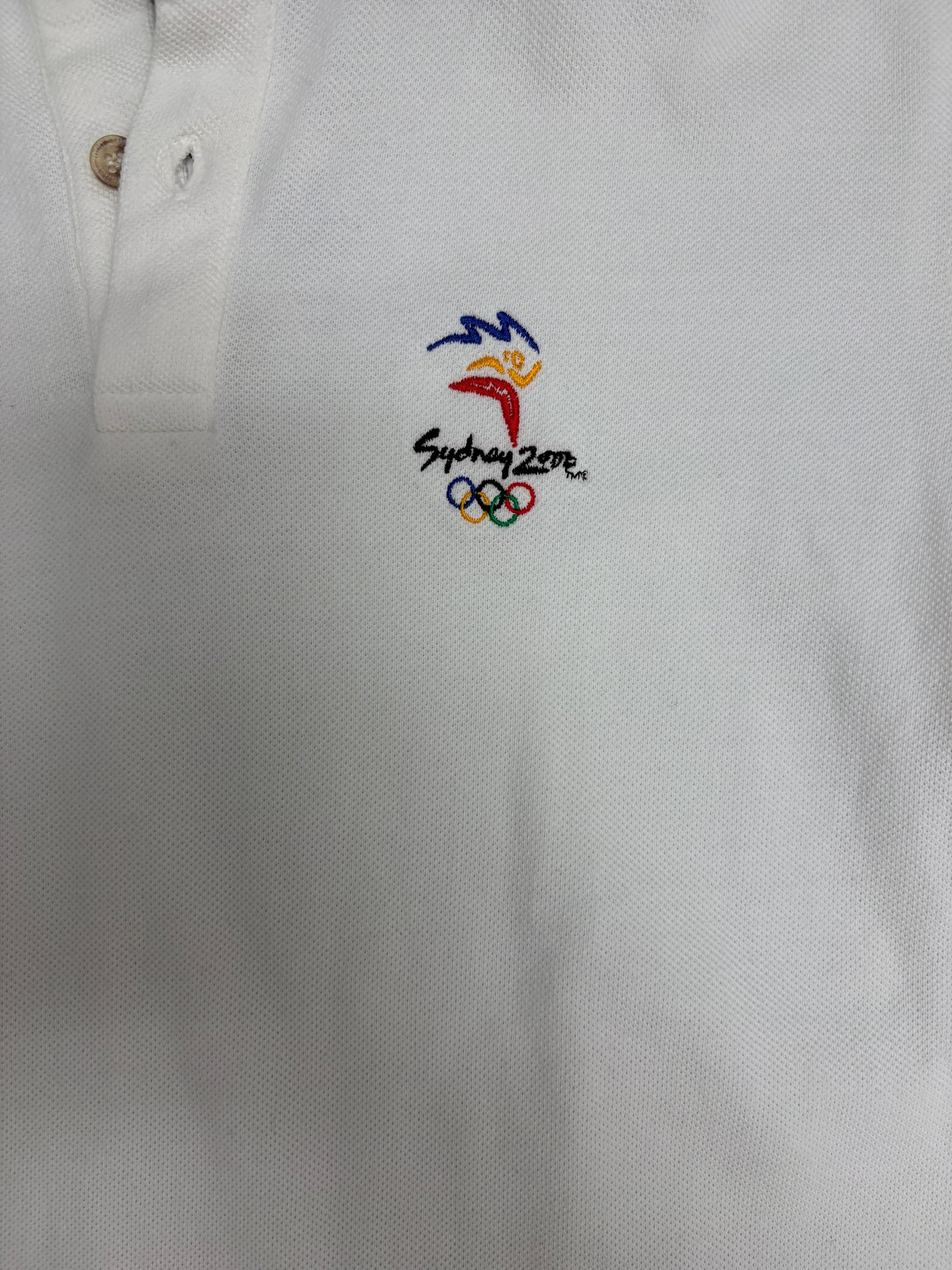 Sydney Olympics 2000 Embroidered Graphic Tee | Size Small | Vintage 2000s White Collared T-Shirt |
