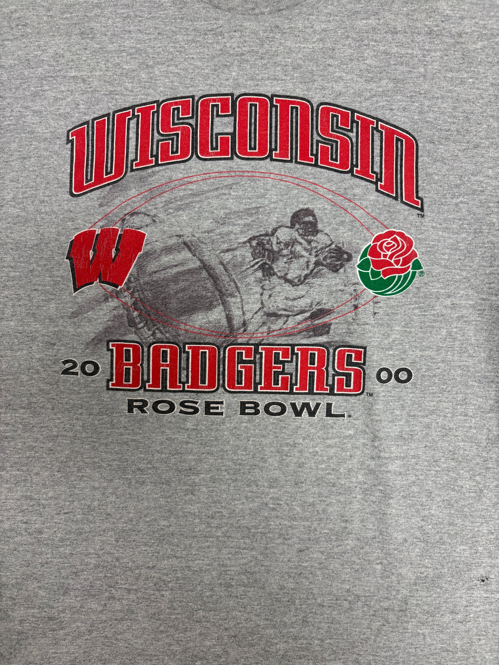 Wisconsin Badgers Rose Bowl 2000 Graphic Tee | Size X-Large | Vintage 2000s College Football Grey T-Shirt |