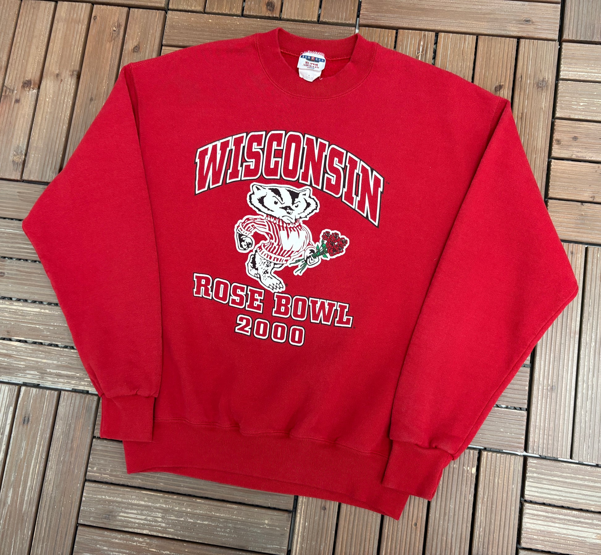 Wisconsin Badgers Rose Bowl 2000 We're Back Graphic Crewneck | Size Medium | Vintage 2000s College Red Sweater |